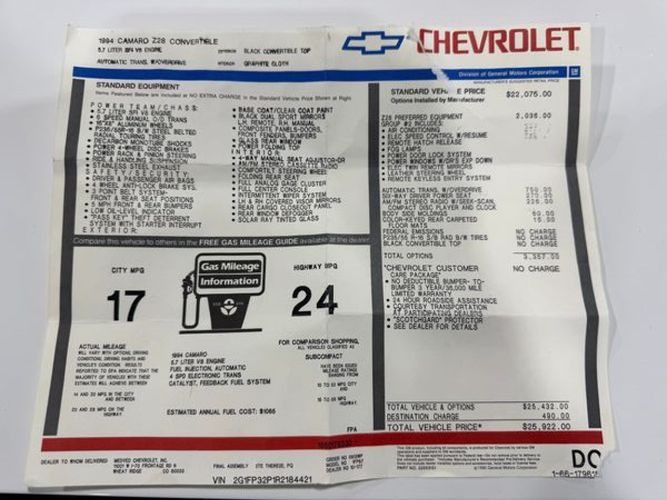 • 3,004 Original Miles 1994 Chevrolet Camaro Z28