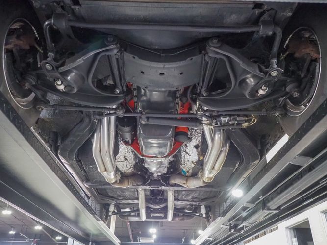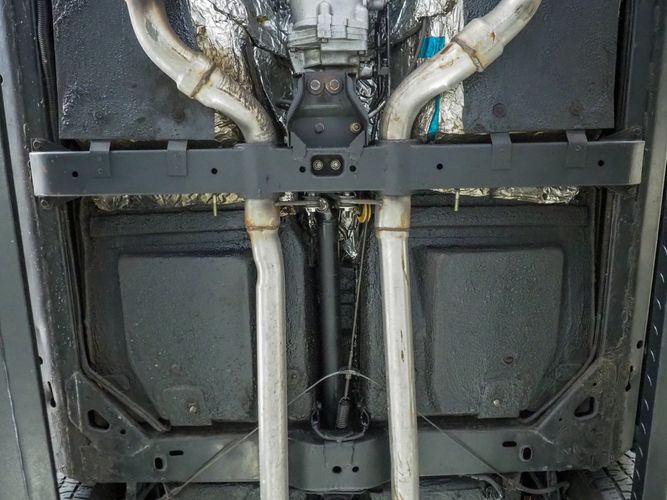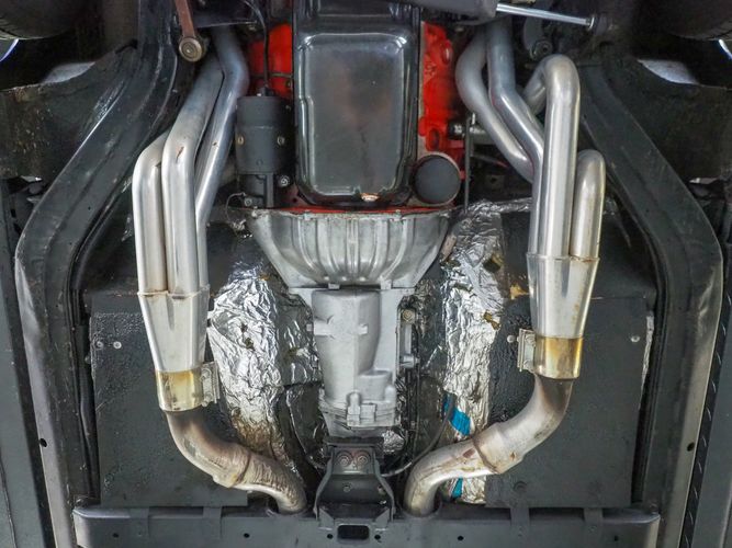 - Large Hooker Super Comp headers into a nice dual exhaust system