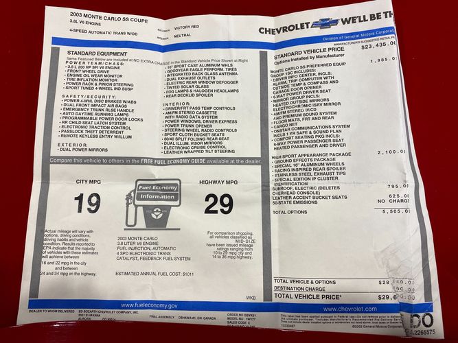 - One owner 2003 Monte Carlo SS 'Limited Edition'