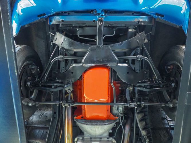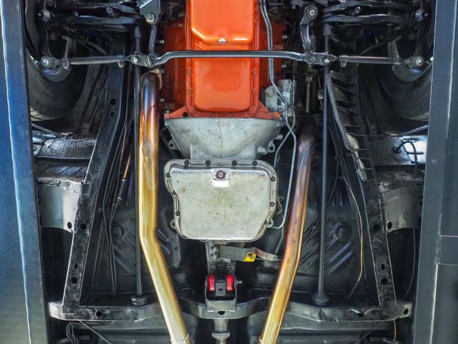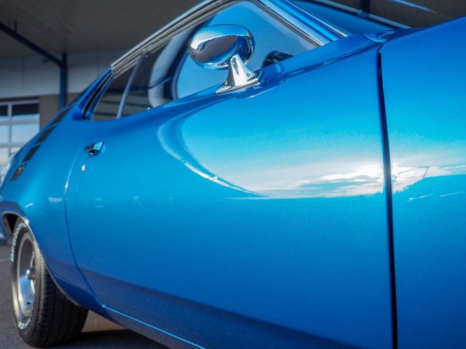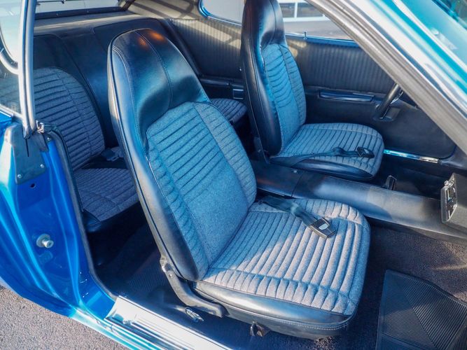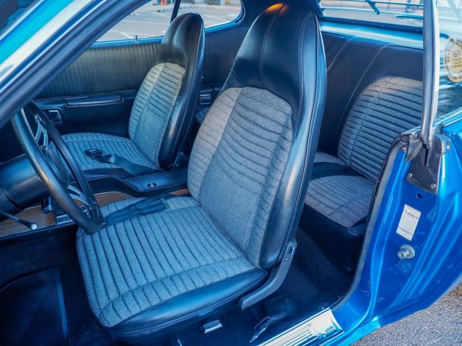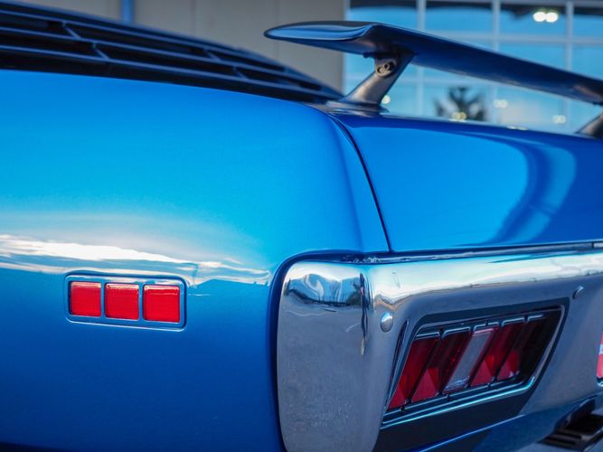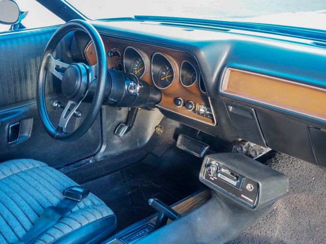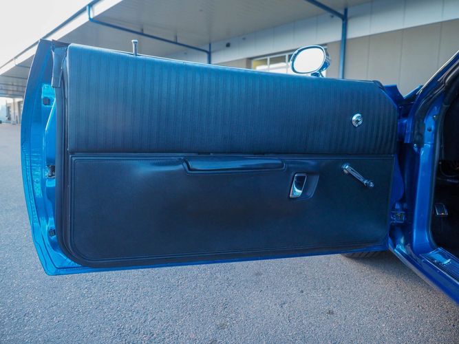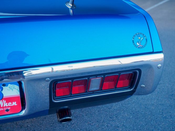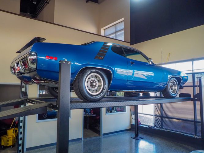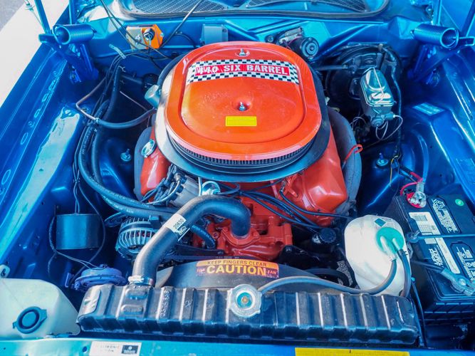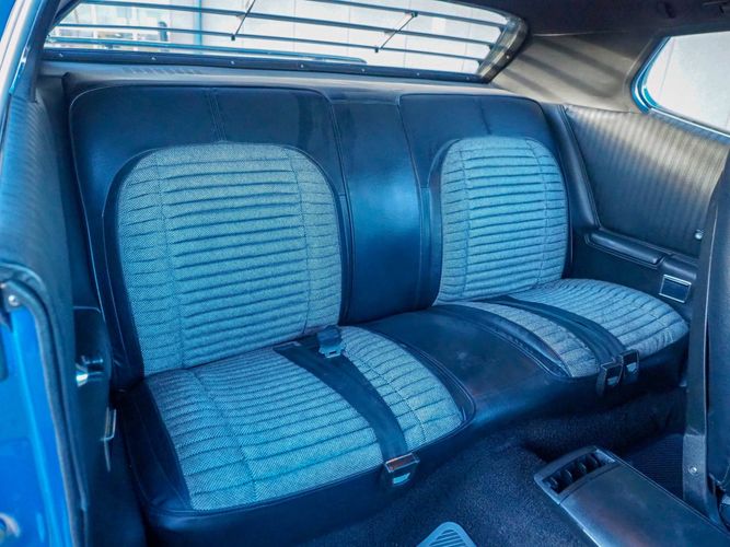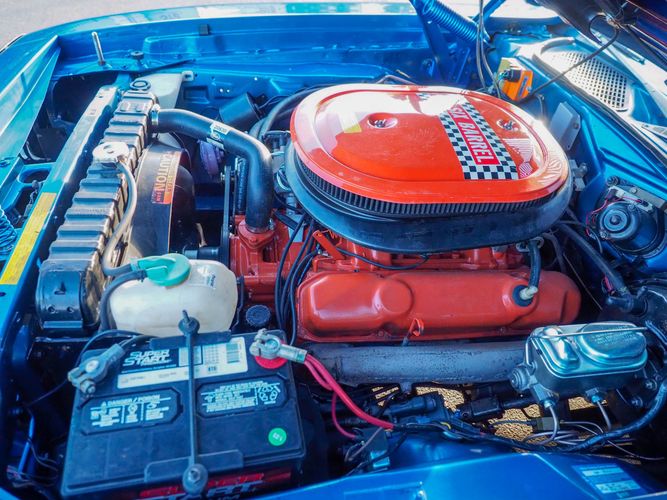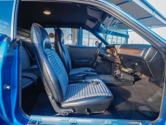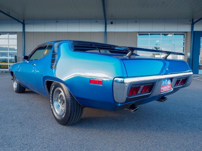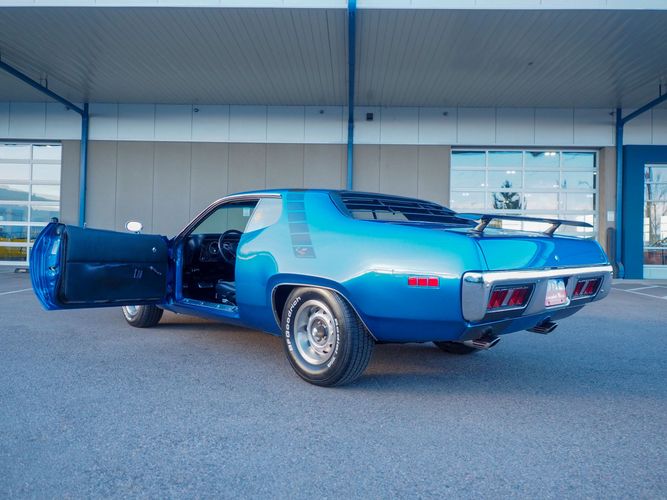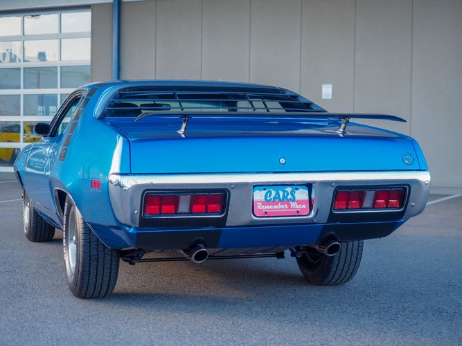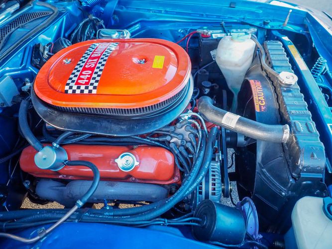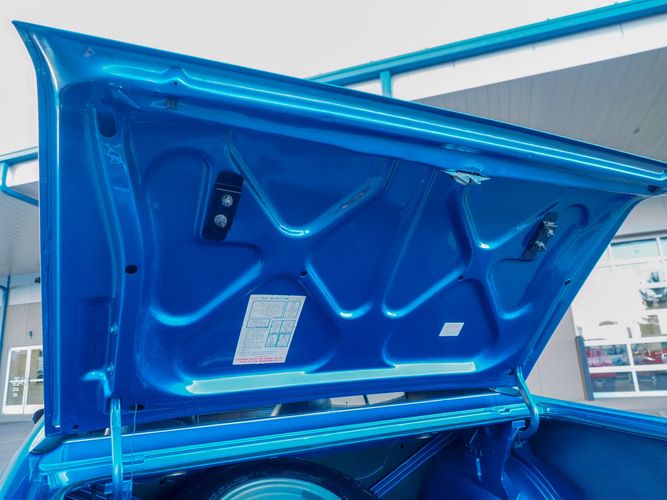 This car is painted in the stunning B7 Evening Blue Metallic, which perfectly complements its classic lines and Road Runner graphics. And don't forget about the air grabber hood, which not only looks great but also provides extra airflow to the engine for even better performance.