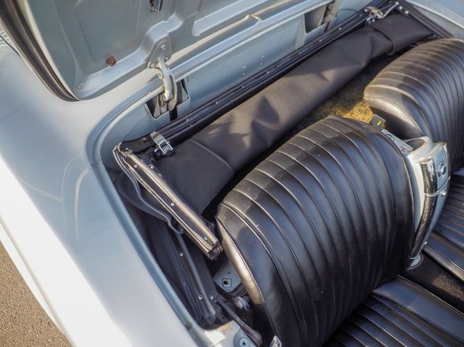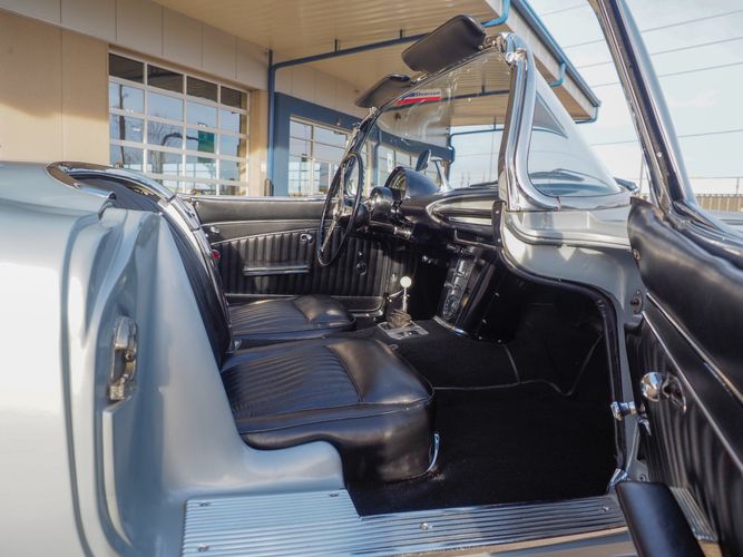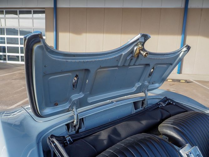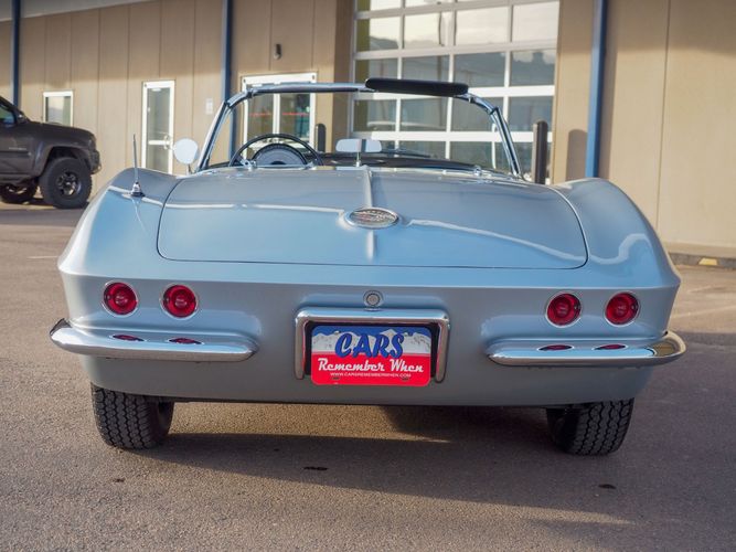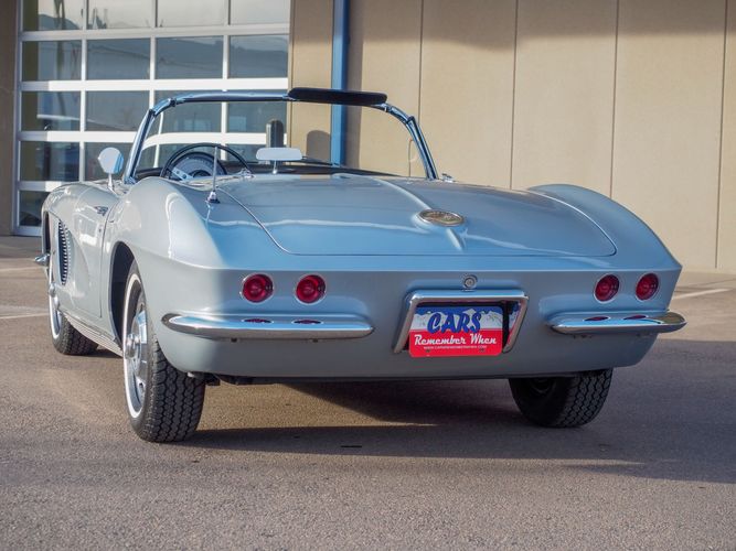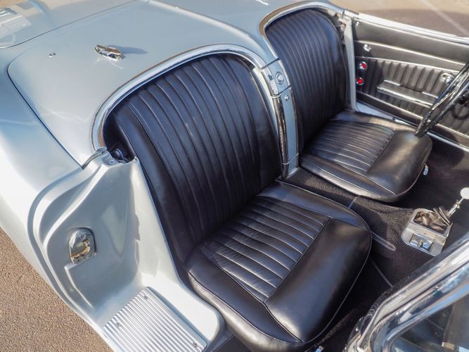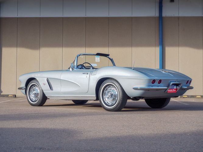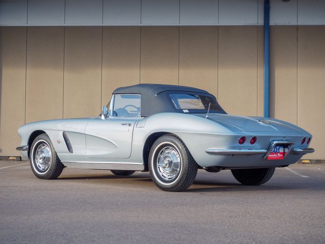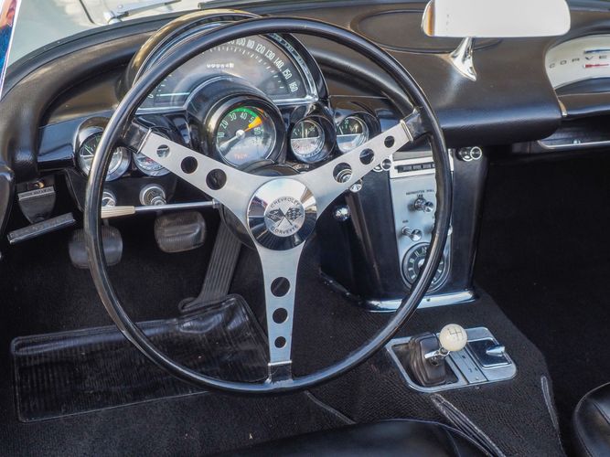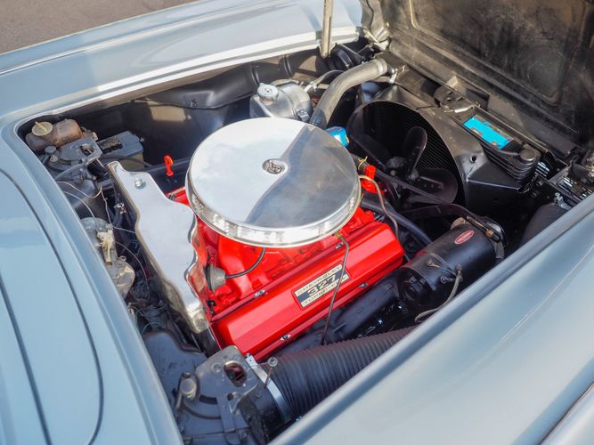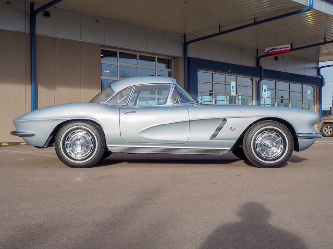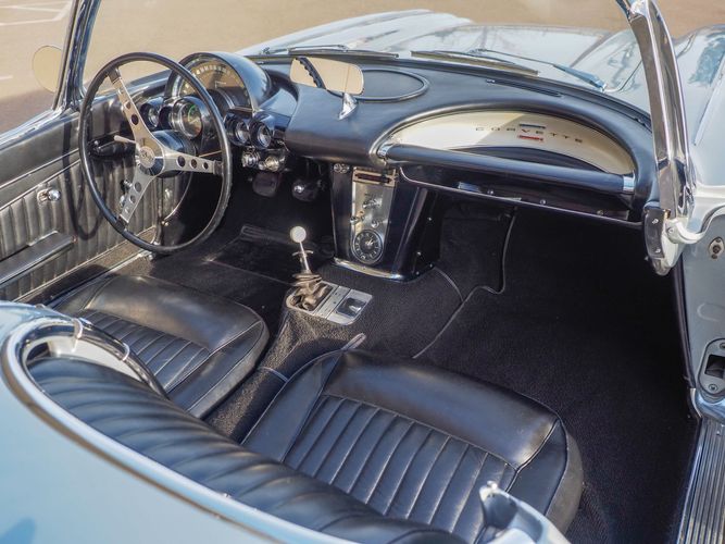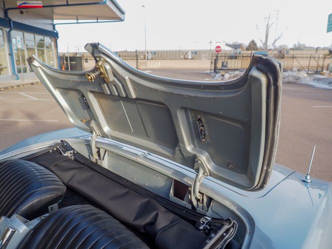 The 1962 Corvette is the last year for the C1 generation of cars. It features a sleek fiberglass body with dual headlights and stylish hub caps with whitewall tires. The paint is finished in a beautiful Sateen Silver. Under the hood, you will find a period-correct 327 cubic-inch V8 engine. It was recently taken out of the car and received new exterior seals and was painted. It runs very strong and makes for an exhilarating driving experience paired with the 4-speed transmission. The suspension consists of a front independent system and a solid rear axle. Drum brakes are on all 4 wheels. The interior has a driver-focused layout with a simple and functional design. It featured bucket seats, a dashboard with a speedometer, and a 5,500 redline tachometer.