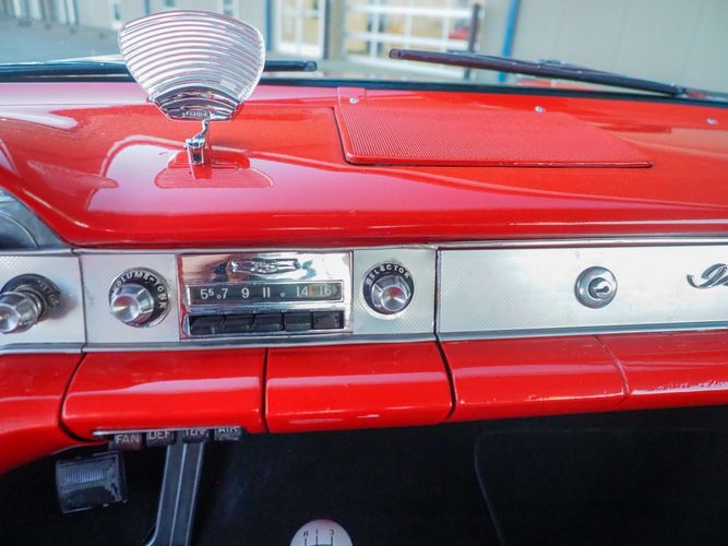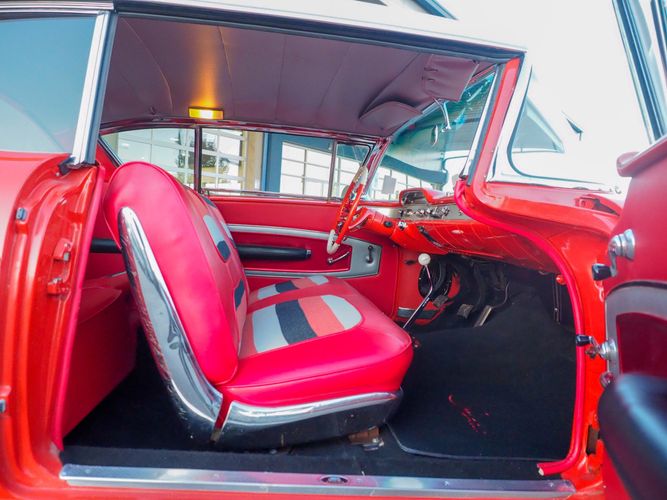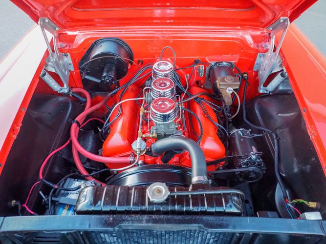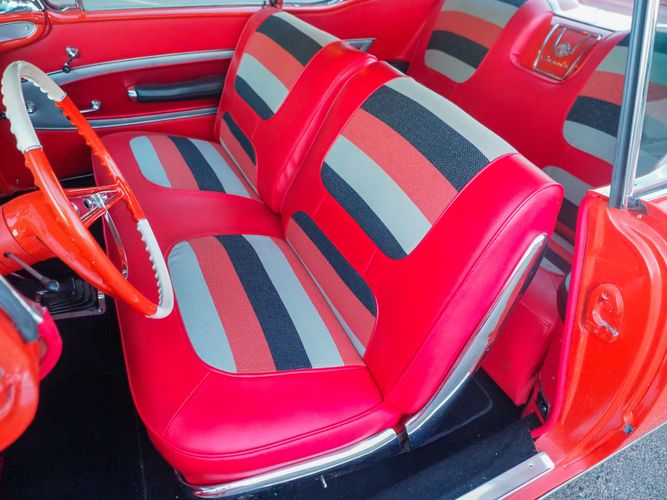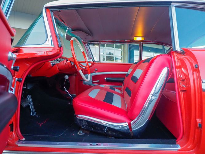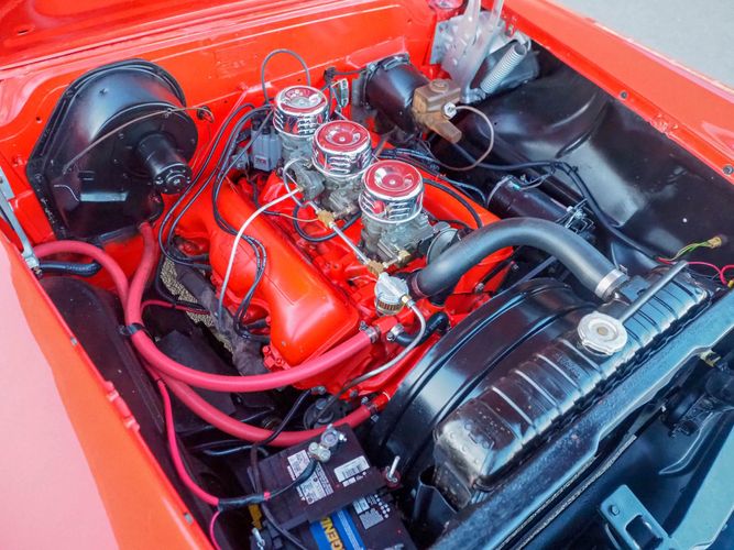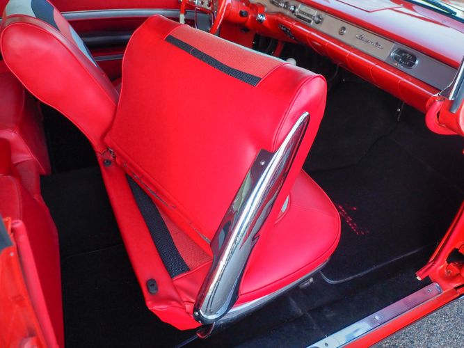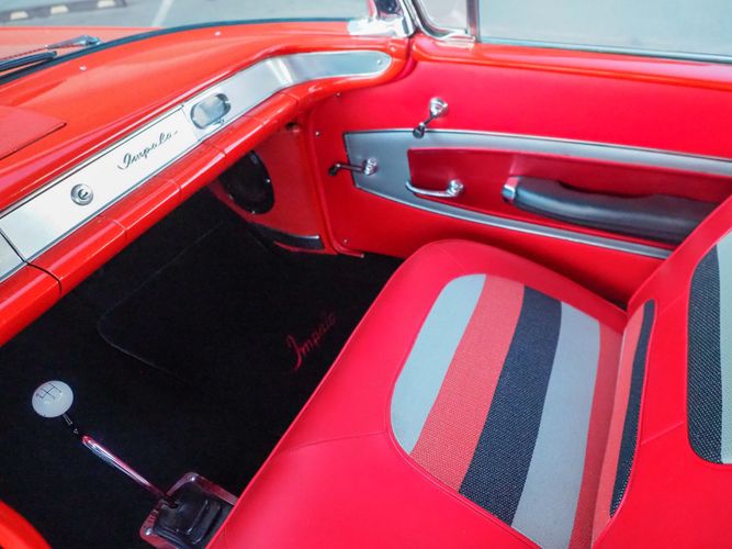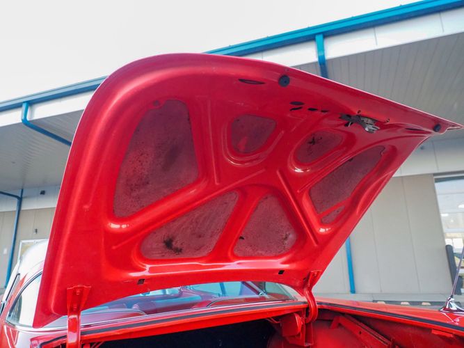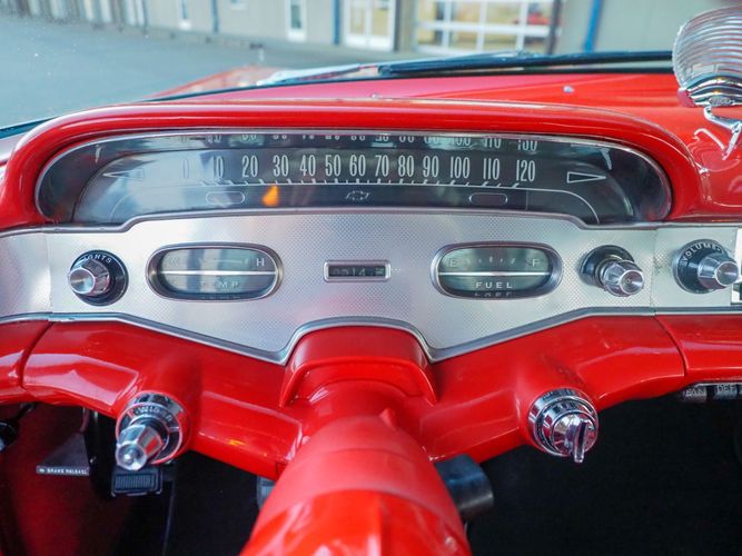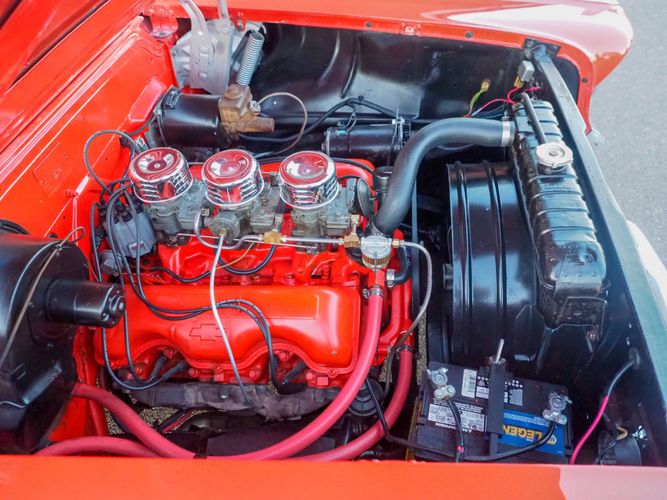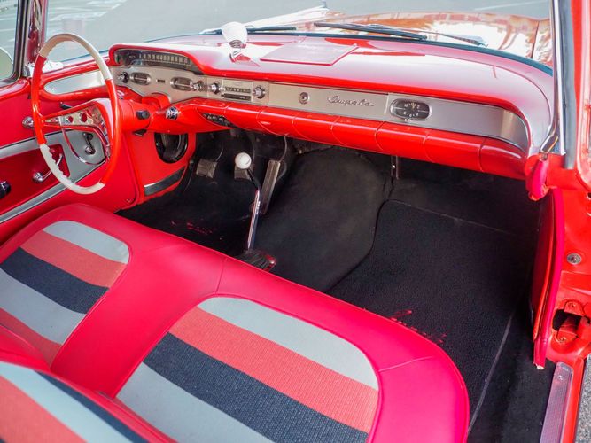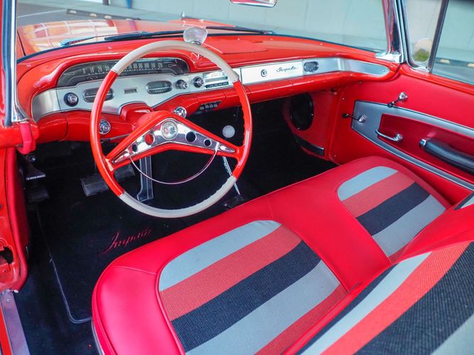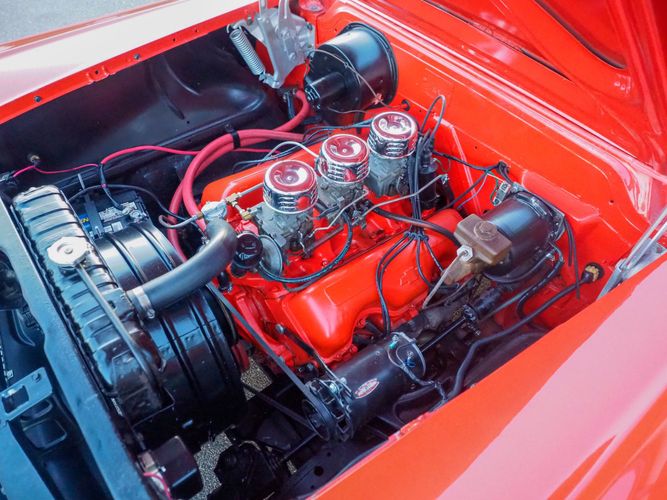 Under the hood, the 1958 Impala offered a range of engine options. The standard engine was a 235 cubic inch (3.9-liter) inline-six, but customers could also opt for V8 engines such as the 348 tri-power engine this example is equipped with.