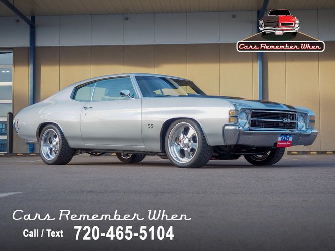 Offered for sale by Cars Remember When Autos Sales is this outstanding 1971 Chevelle Restomod. There has been a lot of time and money invested in this car to make it what you see today. Powered by a fuel injected 502 crate engine this Chevelle will run with the best. Extremely responsive and fast driving experience. The 502 is mated to a beefy overdrive 4L80E transmission with tuned shift points. Power is then transferred to the ground by a Ford 9'' rear end. This Chevelle is complete with a stunning custom interior, dash, and finished trunk. CALL TODAY this Chevelle is running great and ready for its next owner! 720-465-5104