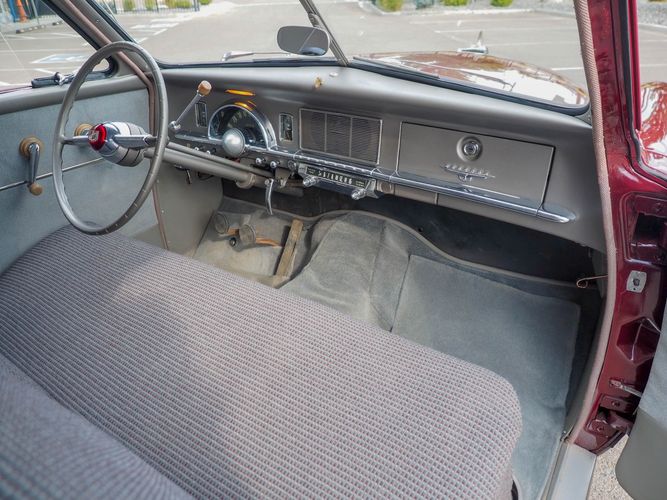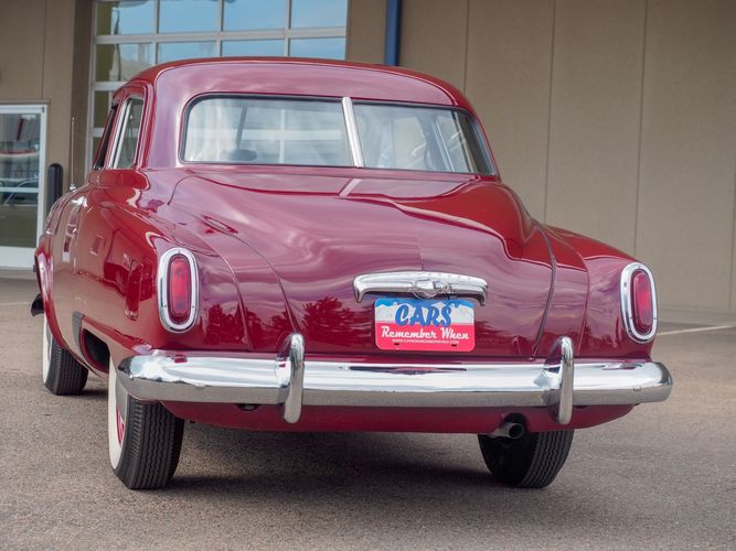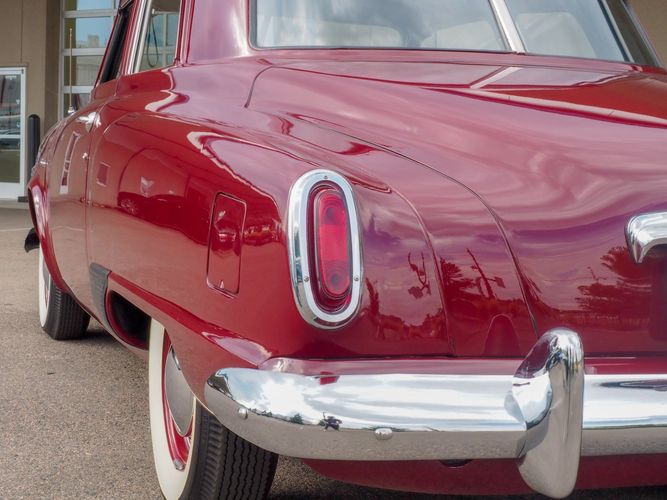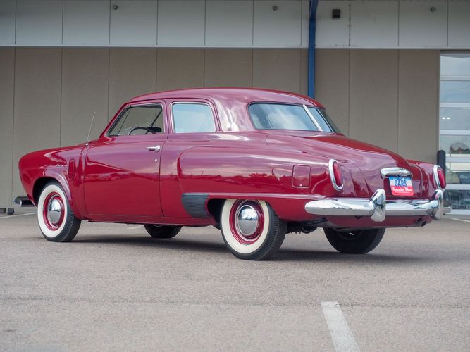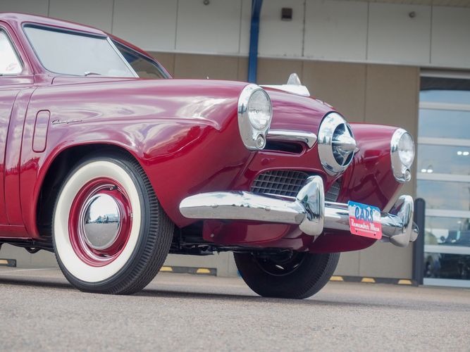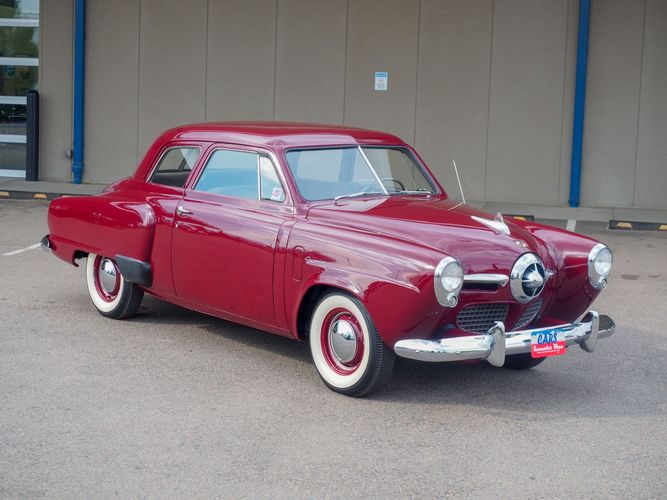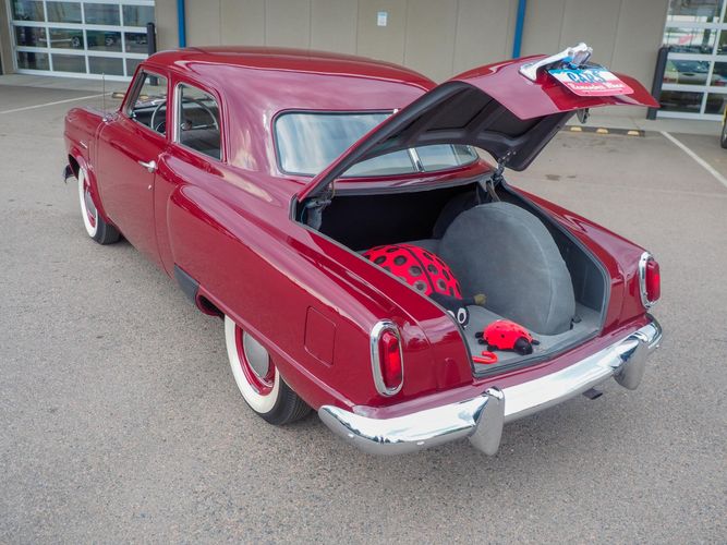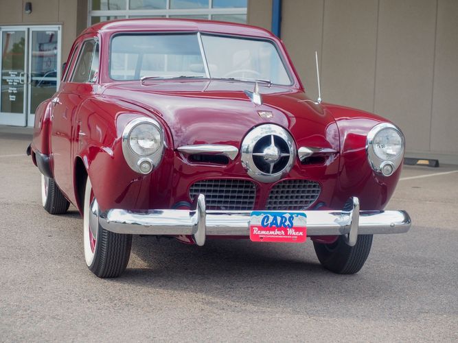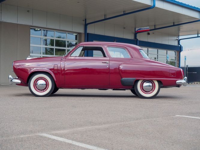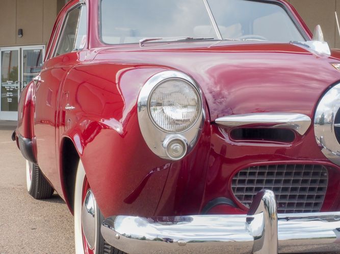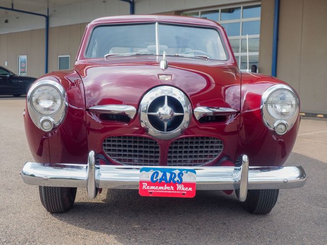 The exterior features the iconic "bullet-nose" grille that cannot be ignored. It is finished in a two-stage burgundy paint that was said to have been painted around 2012 during the restoration. We purchased this car from a member of the Studebaker family who owned the car for about 10 years. She called the car "Lady Bug".