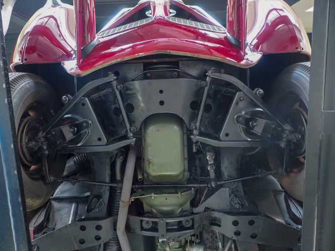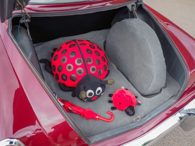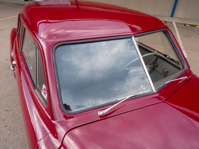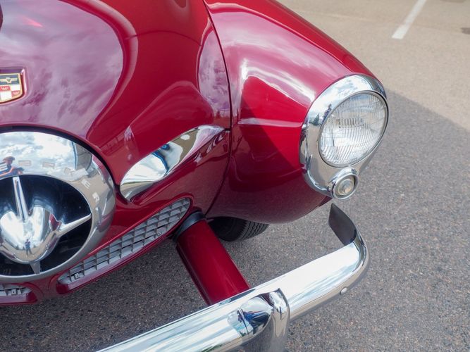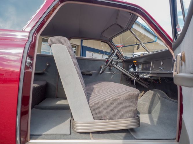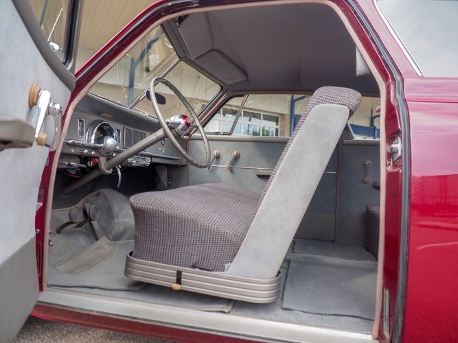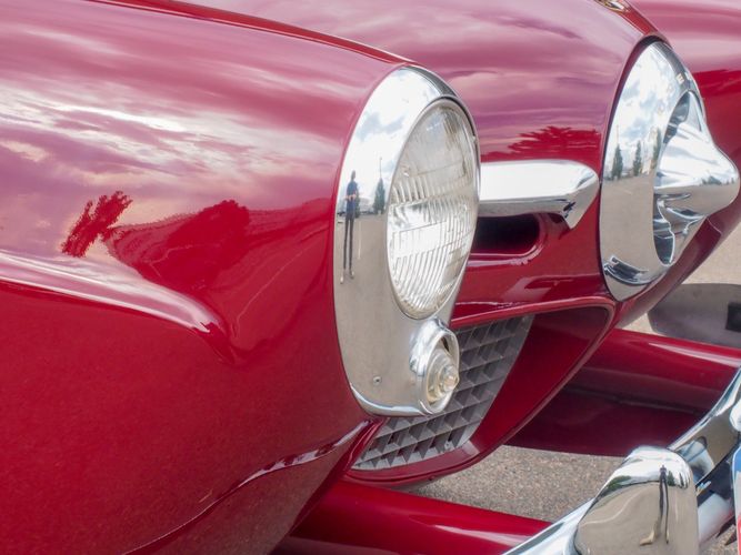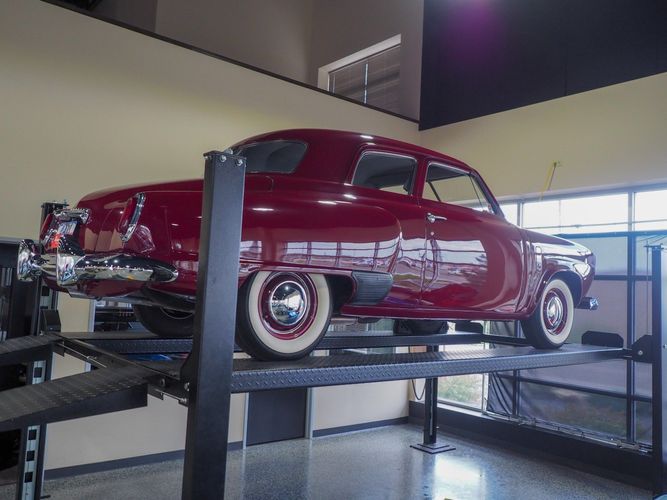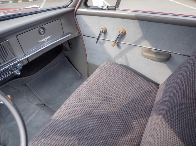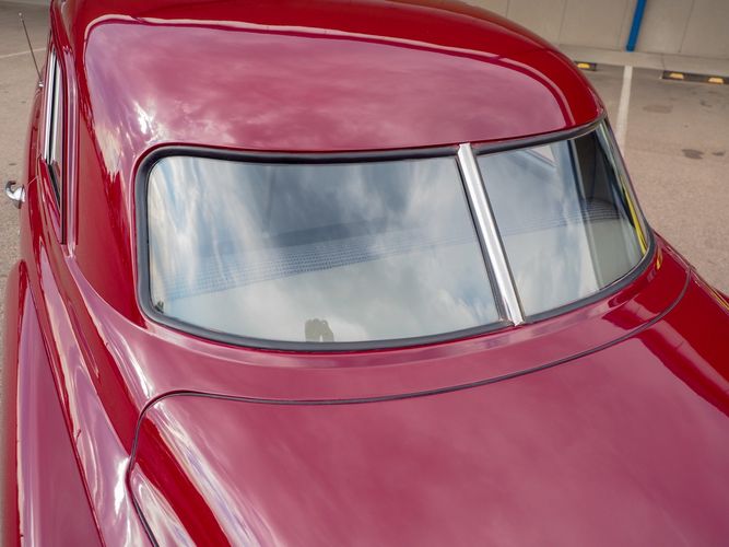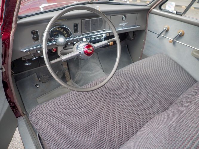 The exterior features the iconic "bullet-nose" grille that cannot be ignored. It is finished in a two-stage burgundy paint that was said to have been painted around 2012 during the restoration. We purchased this car from a member of the Studebaker family who owned the car for about 10 years. She called the car "Lady Bug".