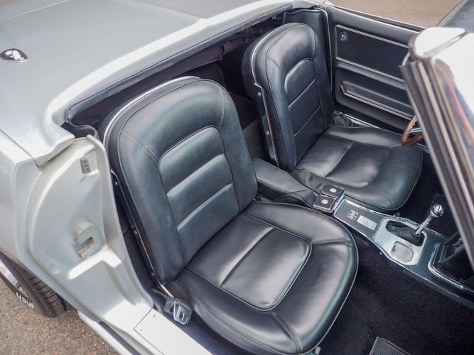 The exterior of this Corvette Convertible shines in a Q code Silver Pearl, the color the car was born in. The paint is an older paint job however recently went through a comprehensive compound and buffing process and is shining bright. Some character and wear are expected upon a close visual inspection. Make sure to watch our posted Youtube video for detailed shots of the paint.