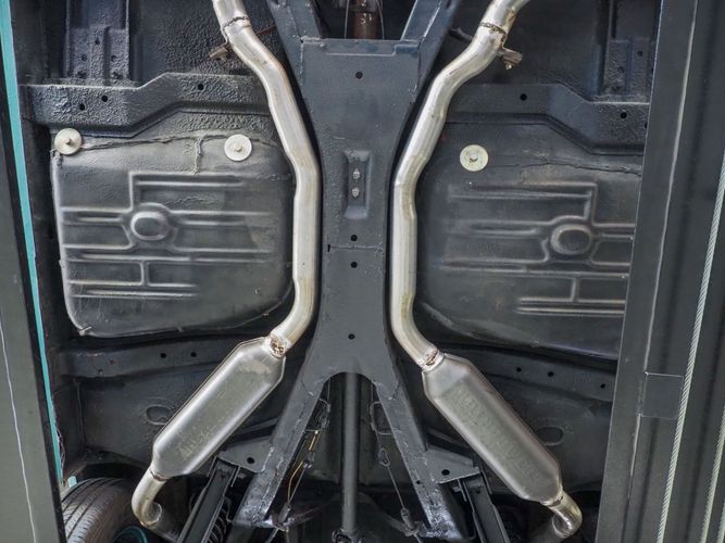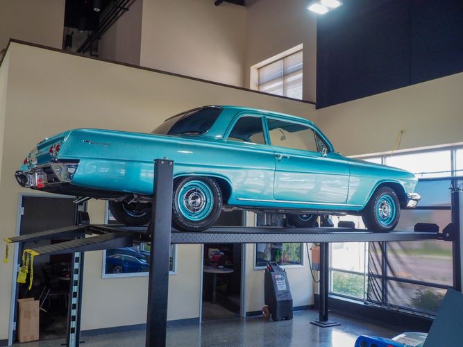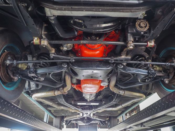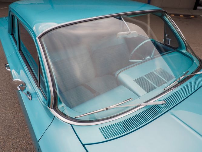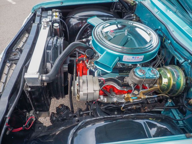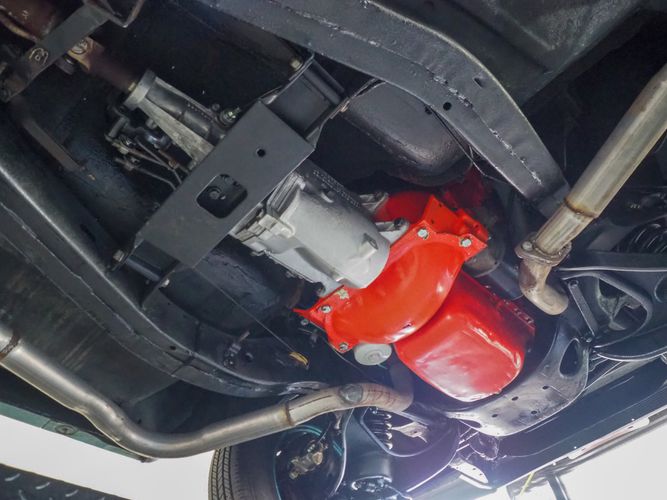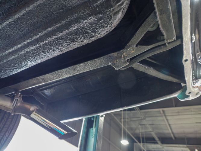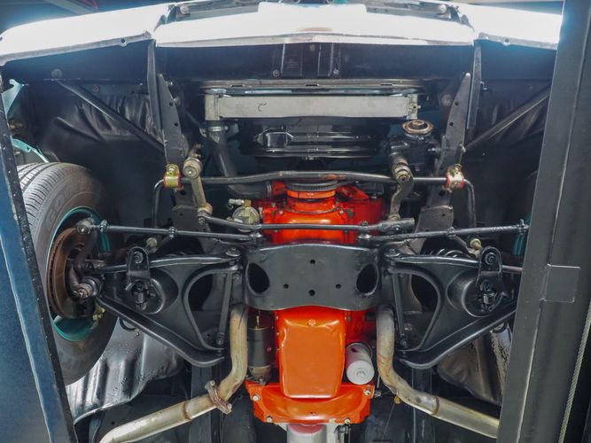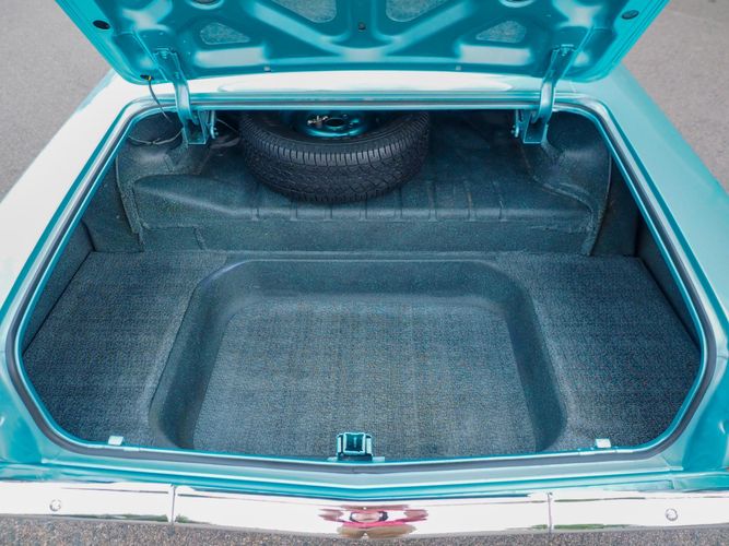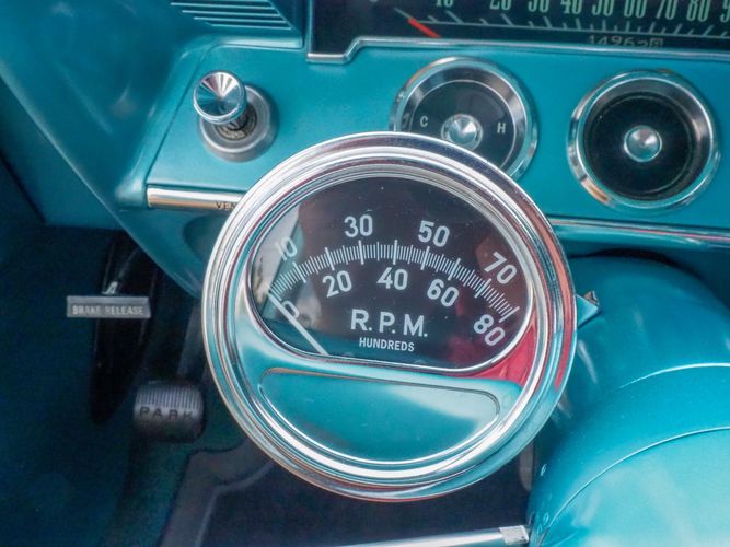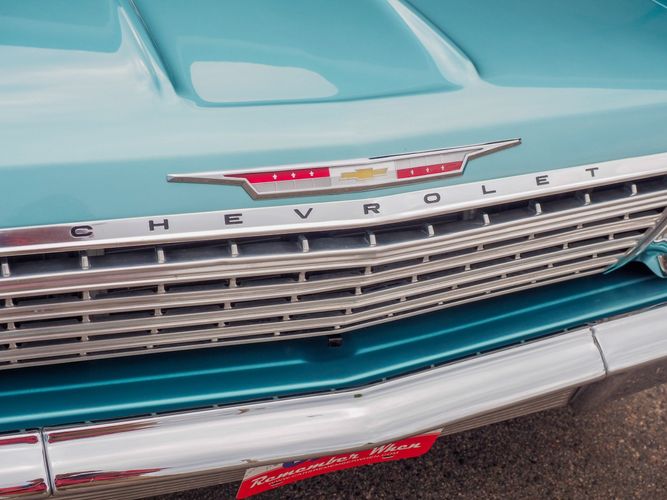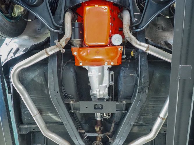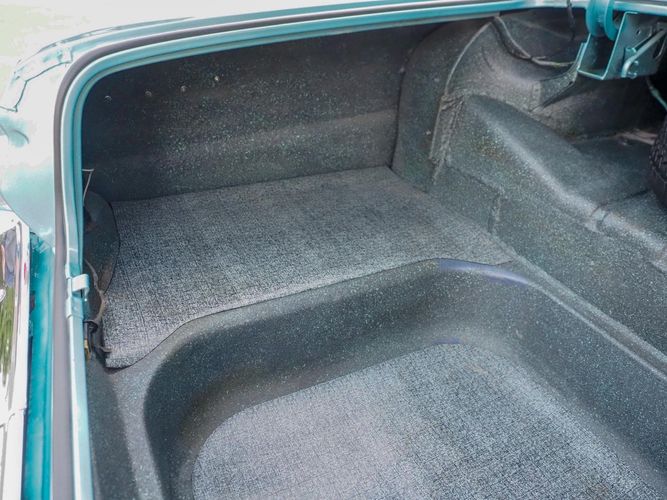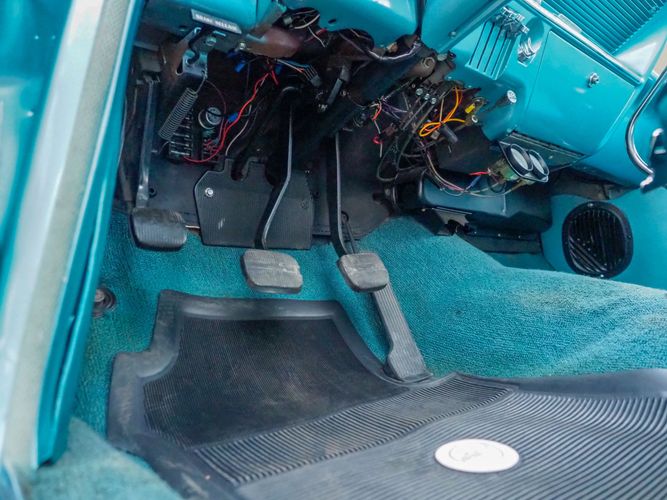 Under the hood, you will find an engine made to look like a 409 dual-quad engine with the dipstick on the right-hand side. The casting number for the engine decodes to a 348 engine. It runs very strong and has a period-correct sound coming from the dual exhaust. A recently rebuilt Muncie transmission and new clutch are installed and work perfectly. The heater is hooked up and does operate. Also equipped with power brakes.