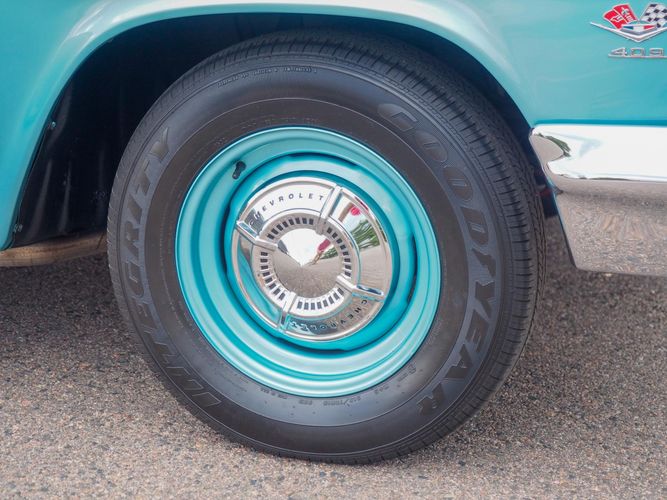 The is a very nice 409 clone with an amazing color combo and the matching dog dish hub caps with radial tires. Call Today! 720-465-5104