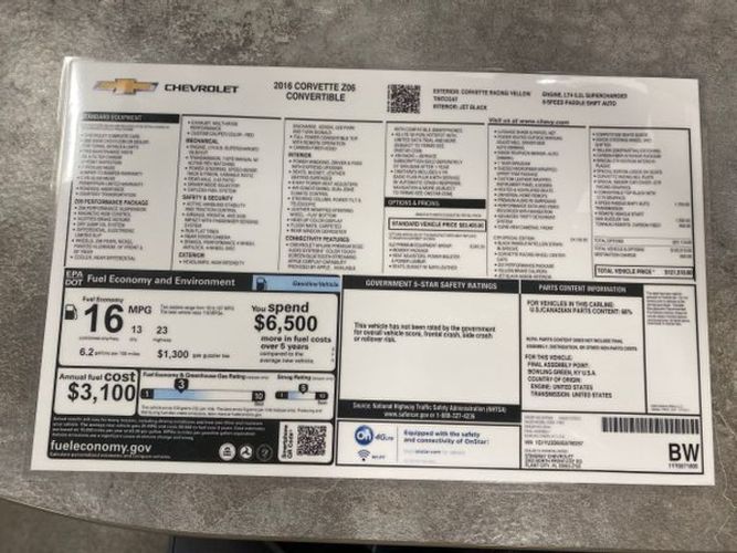 1,816 mile 2016 Corvette 3LZ Z06 C7.R Convertible
