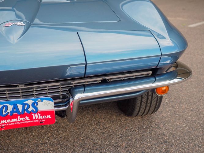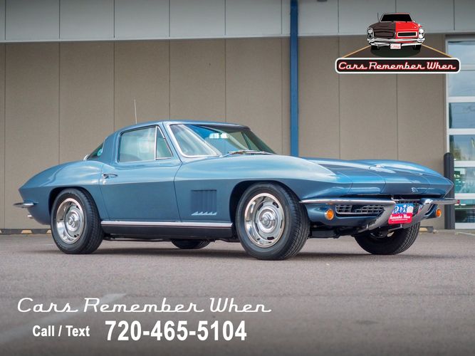 This 1967 Corvette coupe has undergone a total frame-off restoration completed in March of 2012 and won an NCRS regional top flight award shortly thereafter. It is now offered for sale by Cars Remember When Auto Sales. It is finished in its original paint color code 977 Lynndale Blue. The interior of the car has a very original feel to it with leather seats. Under the hood, you will find an L79 327/350HP with matching numbers as seen in the photog gallery. A newer style Holley carburetor has been fitted for better drivability but the original carburetor will come in a box with the car. It is equipped with a Muncie 4-speed manual transmission and an independent positraction rear end. Additional options include power 4-wheel disc brakes and an AM/FM radio. The underside is in impeccable condition and shows off the attention to detail that went into this restoration. Call Today! 720-465-5104