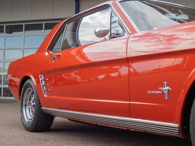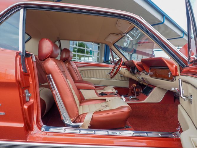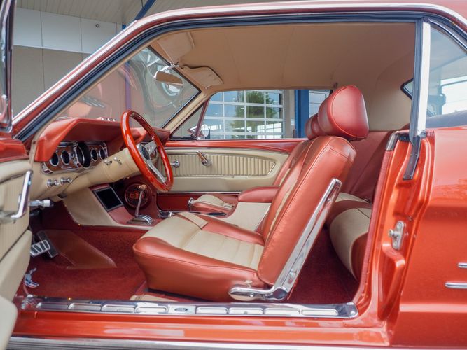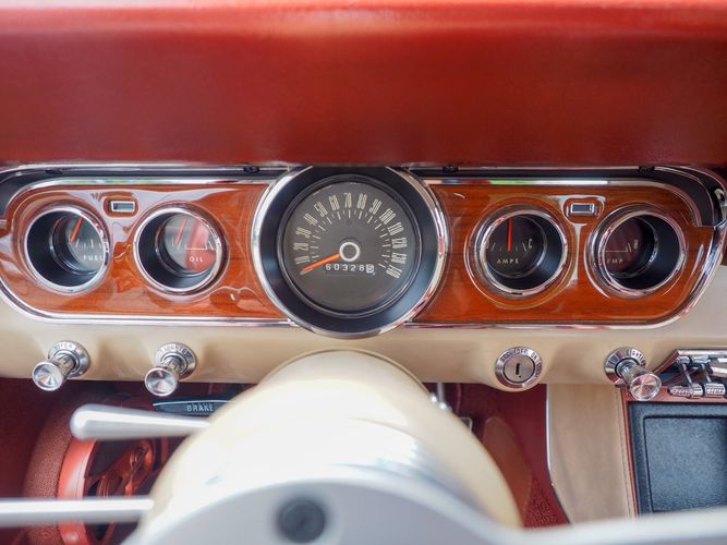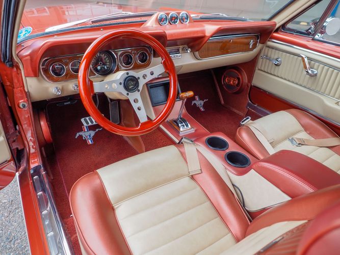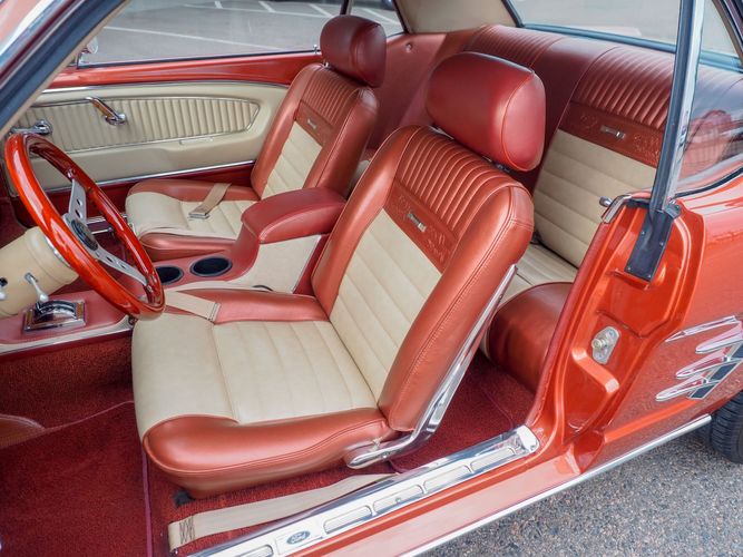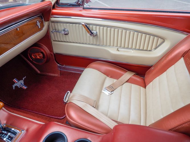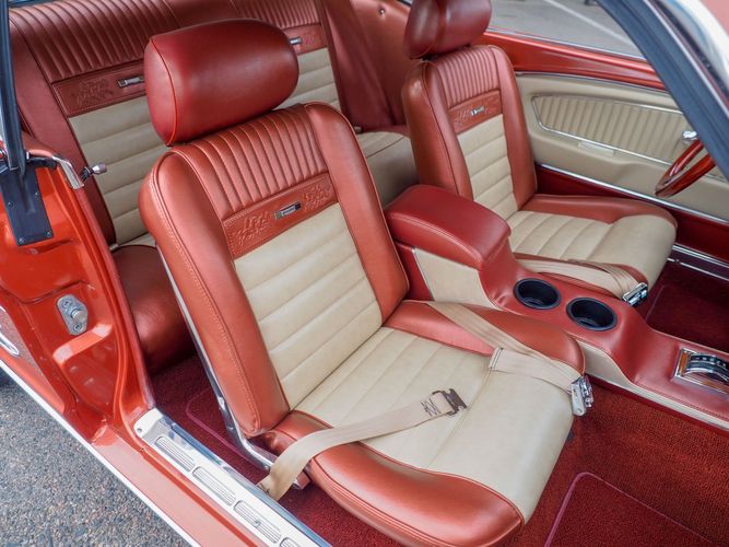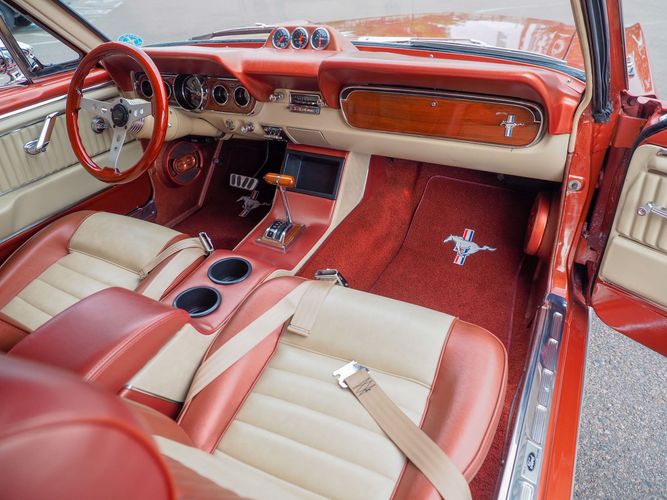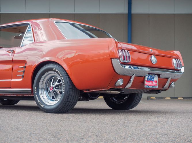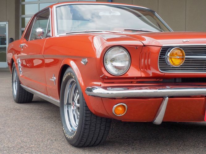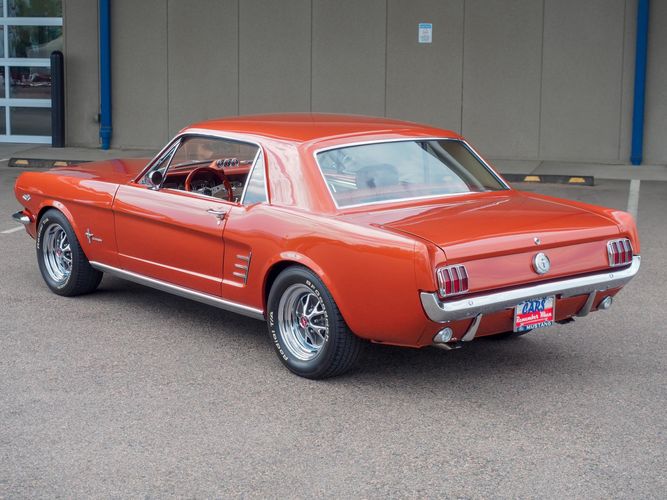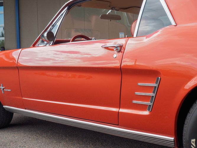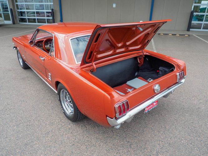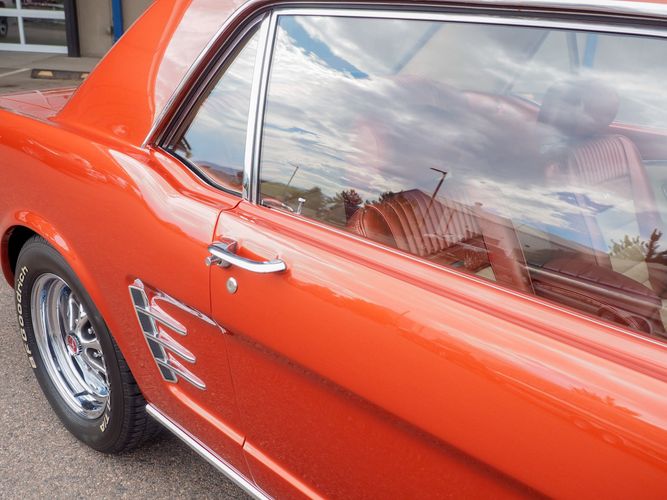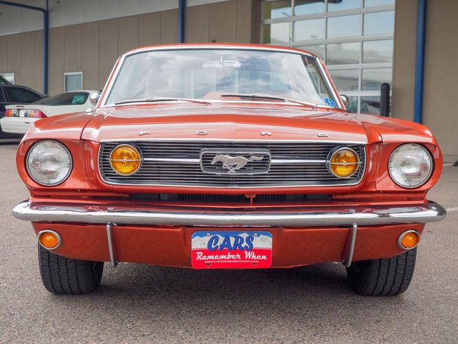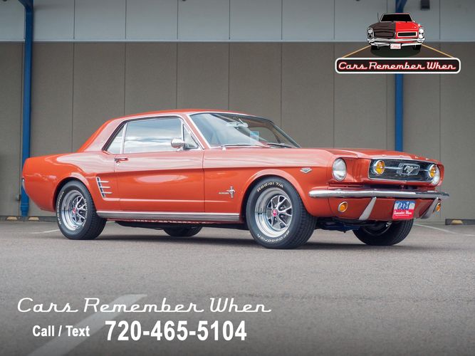 Check out this beautifully restored 1966 Ford Mustang Coupe in its rare and original Emberglo paint. This Mustang is not your normal coupe and is packed full of tasteful upgrades added during the restoration. Under the hood, you will find a high performance 333 cubic-inch stroker small block engine. It is also equipped with power front disc brakes and an upgraded borgeson power steering system. Subframe connectors have been added for increased chassis stiffness. The vehicle runs and drives excellent and gets lots of attention on the road. The interior really helps set this Mustang apart from the pack. It has been upgraded to a pony style interior with two-tone seats and a console. Custom wood grain inserts with a gloss finish look very premium along the center mounted gauges. This Mustang is offered for sale by Cars Remember When Auto Sales. CALL TODAY 720-465-5104