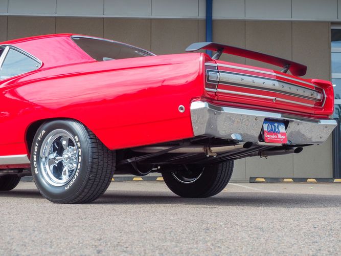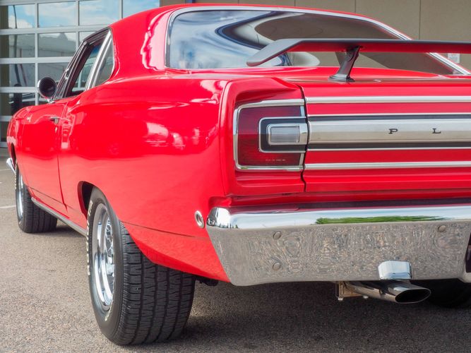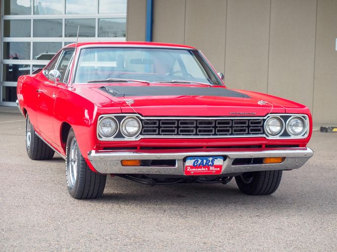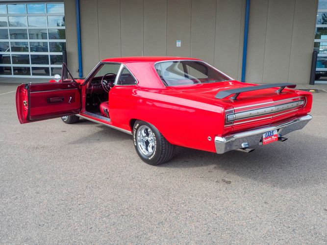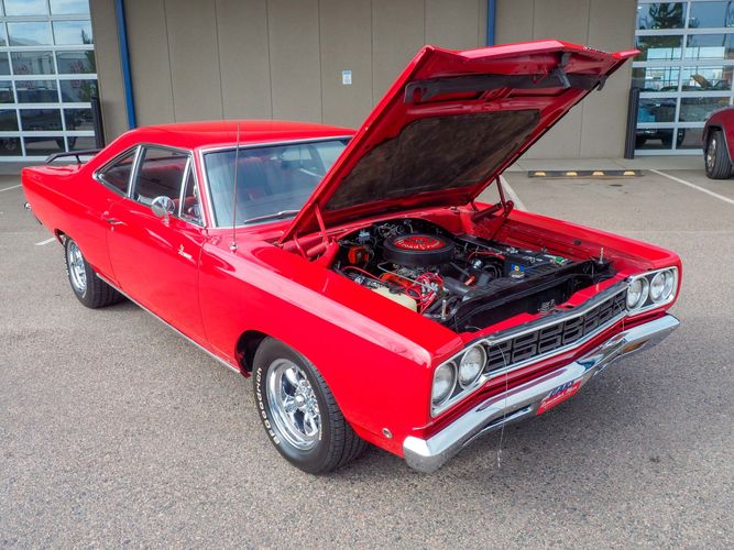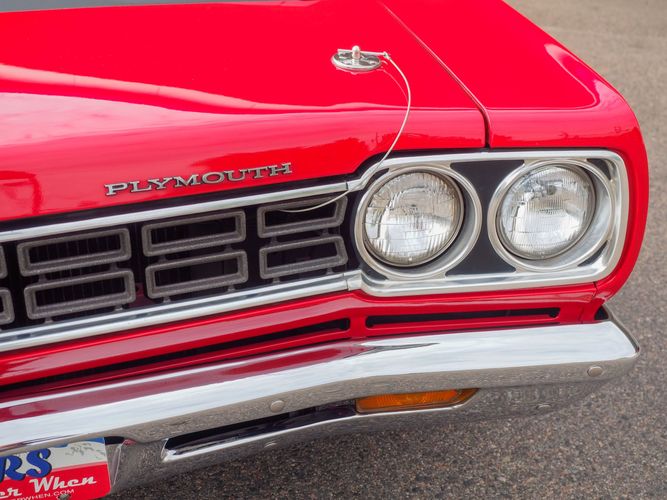 1968 marked the debut of the Plymouth Road Runner a true muscle car competitor. Chrysler may have been late to the muscle car era, but it was worth the wait. This car has it all going on; a Mopar 383 engine breathing loudly out of a dual exhaust system. This power plant is attached to a 4-speed manual transmission making it a desirable combo. The rear spoiler was added for increased styling. This vehicle shows 68,013 miles on the odometer and that is believed to be original based on the condition of the car. It appears to have been repainted one time and the interior seat upholstery has been restored. The radial t/a tires and chrome wheels give a perfect muscle car stance. This vehicle is now offered for sale and is located in our showroom in Englewood, CO. Call today for more information! 720-465-5104