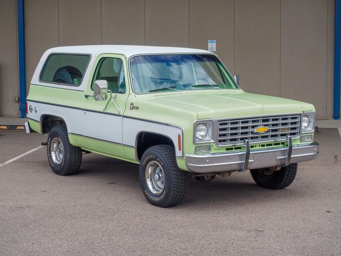 Offered for sale by Cars Remember When Auto Sales is this survivor condition 1976 Chevrolet Blazer Cheyenne. It was bought new in Colorado and has been with the same owners since 1977. This vehicle was used mainly at a vacation home in Silverthorne, Colorado and kept in the garage when not in use. The odometer reading of 48,787 is believed to be original according to the current owner and condition of the vehicle. It appears to have one repaint of its original Willoway Green factory color. The interior, engine bay, and undercarriage are largely believed to be original. The vehicle came optioned with the 400 small block engine and 3-speed automatic transmission. The factory A/C was recently serviced and converted to R134a refrigerant. The engine starts easily and runs very smoothly. Overall this Blazer drives excellent. The bucket seat console interior is in excellent condition showing much of its original upholstery and wood grain finish. The dash and gauges are in very good condition and certainly show this vehicle was garaged stored and cared for. Here is your chance to own a very original 1976 K5 Blazer showing just 48,787 miles on the odometer! CALL TODAY 720-465-5104