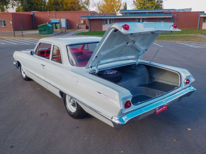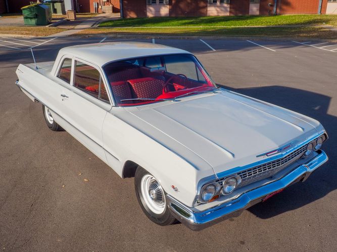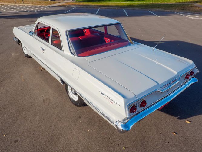 Offered for sale is this beautifully restored 1963 Chevrolet Bel Air. This car was purchased brand new in Florida and comes with its original dealer invoice. Eventually, the car was parked in a barn and stored for a very long time. It was purchased from the original owner's family in 2005 and hauled away to be restored. We do not have records on when the restoration was completed but it's safe to say sometime between 2007 and 2020. The quality of the restoration shows in every aspect of the car. This was a frame off restoration and the underside has lots of new components. The paint, body, and interior are excellent. Much of the bright work and chrome are original and in excellent condition. The engine is a period correct 327/300hp with an Edelbrock 4-barrel carburetor. A modern Tremec 5-speed manual transmission has been added for a unique drivetrain combination. This car can easily be driven on city streets or at highway speeds with a comfortable engine RPM. If you are looking for a quality 2 door sedan look no further than this Bel Air!
