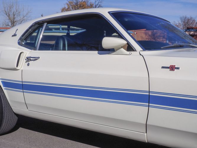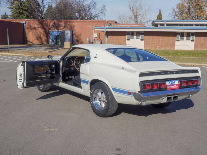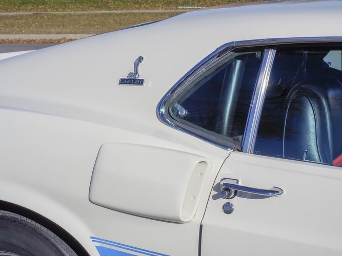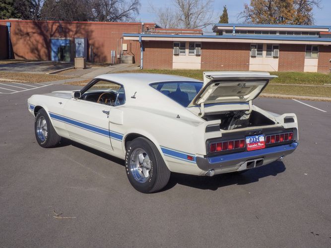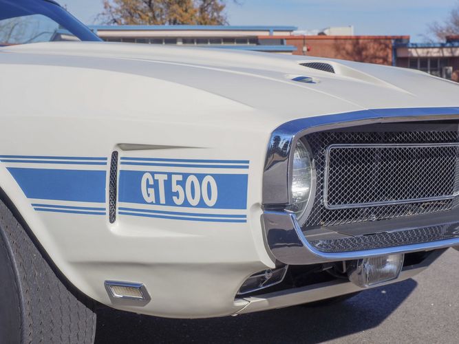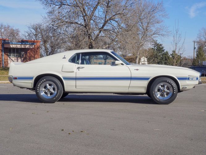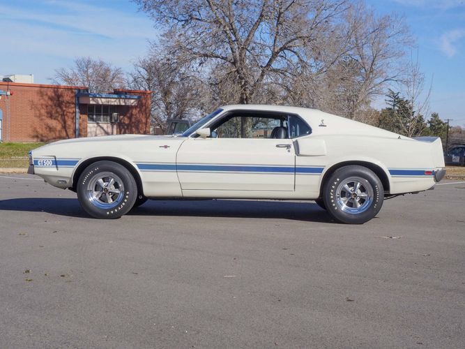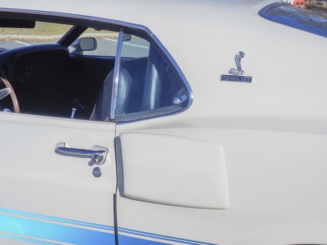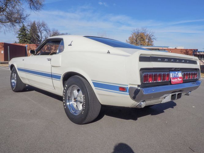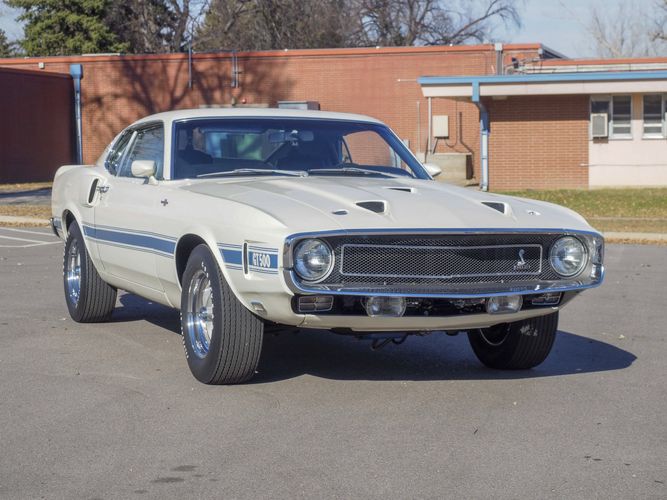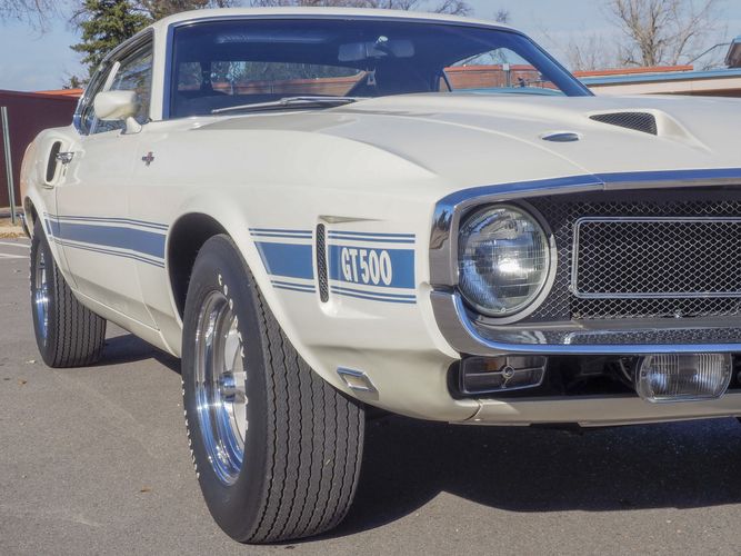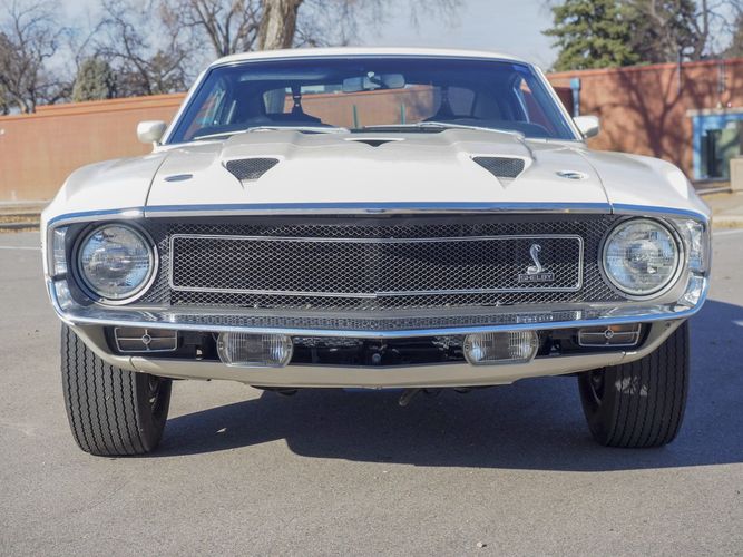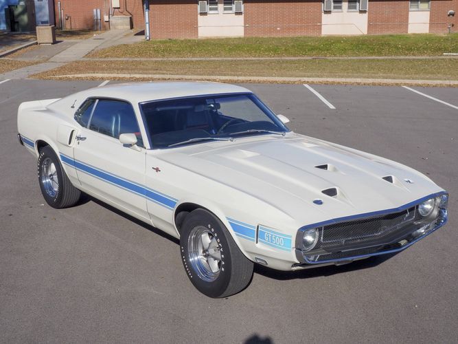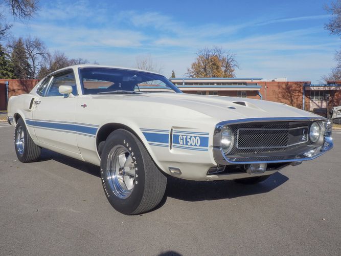 This is your chance to own a true piece of Shelby history. The condition and originality of this GT500 make it especially desirable. For sale is a 1969 Shelby GT500 in Wimbledon White over Black Clarion Knit / Corinthian Vinyl interior. Equipped with a 428ci Cobra Jet Ram Air engine mated to a 4-speed close ratio manual transmission. This is a real deal survivor car that has not been restored or taken apart. Appears to have all original sheet metal and floors. The paint has been touched up in some areas and it appears the blue stripe kit has been replaced.