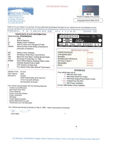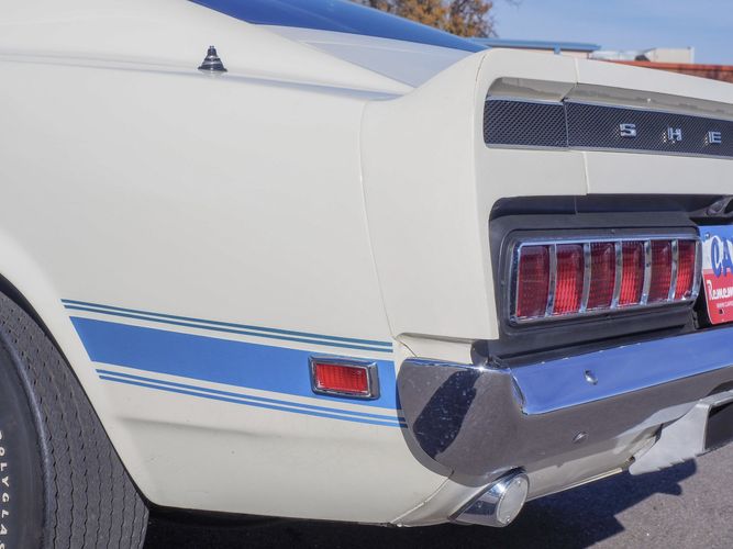 The odometer reading of 32,288 miles is believed to be original based on the condition of the car. As documented by the Marti Report, this car is 1 of just 36 produced in this paint/trim combination. Riding on older period correct Goodyear Polyglas tires this Shelby will steal the show anywhere you take it. If you are in the market for an original Shelby GT500 take a close look at this survivor condition Wimbledon White example! Call today at 720-465-5104.