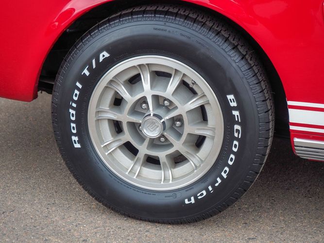 Underneath its glossy exterior, you'll find a 289 V8 engine with an aluminum intake and a 4-barrel carburetor. Paired with an automatic transmission with a casual driving experience. Furthermore, power steering and front disc brakes add to the ease of drivability. Completing the package, brand new BF Goodrich Radial T/A tires provide the perfect grip and stability, ensuring a confident ride on any road.