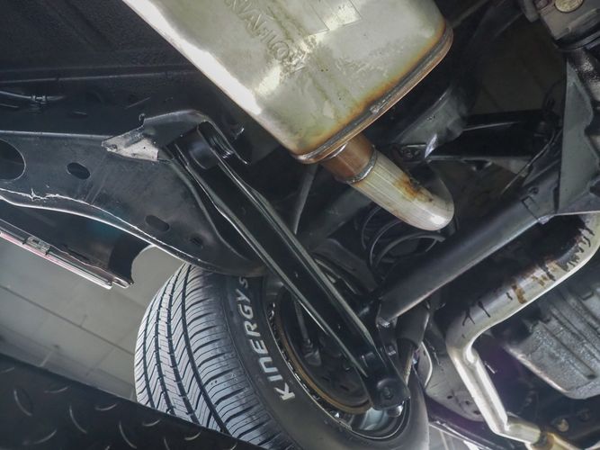 Brand front 205/70R15 and rear 265/50R15 tires on Crager wheels