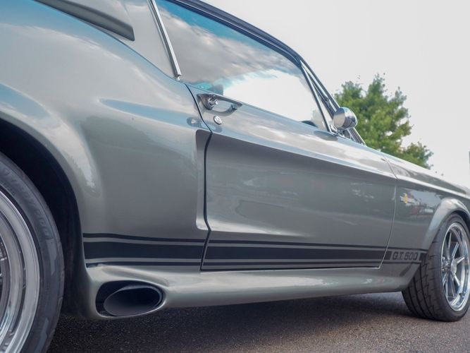 Cars Remember When Auto Sales presents this exceptional 1967 Ford Mustang Fastback Eleanor Tribute, the result of a full rotisserie restoration completed with meticulous attention to detail. Finished in striking Metallic Gray with painted black racing stripes, it features a sleek black interior, 18'' aluminum wheels, bulge-style hood with safety pins, side scoops, fog lights, and side-exit exhaust—an unmistakable presence that demands attention wherever it goes.