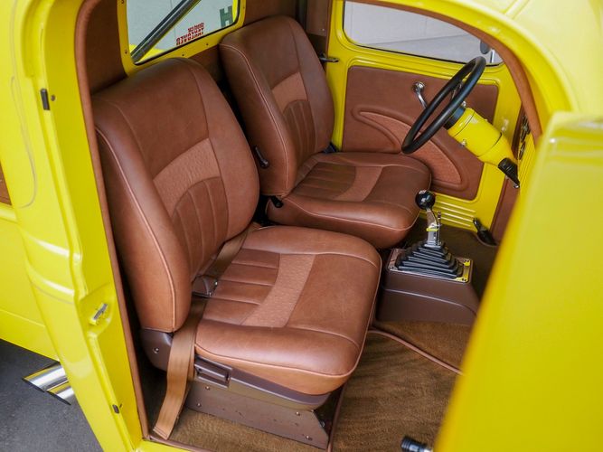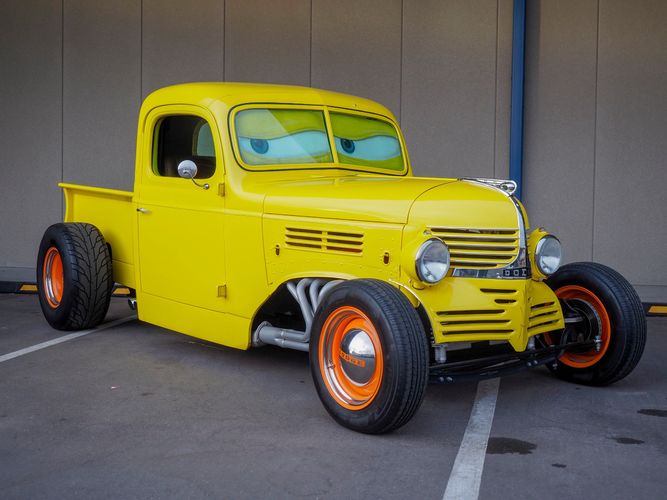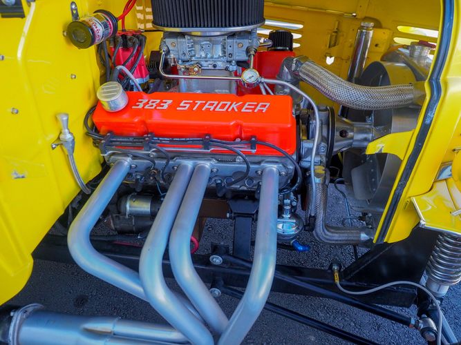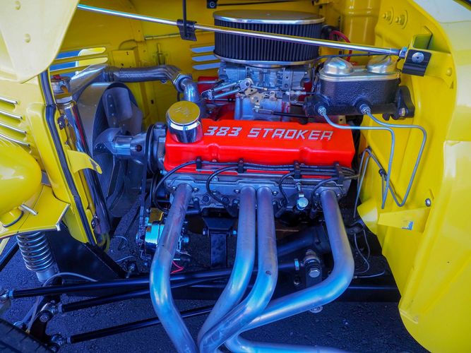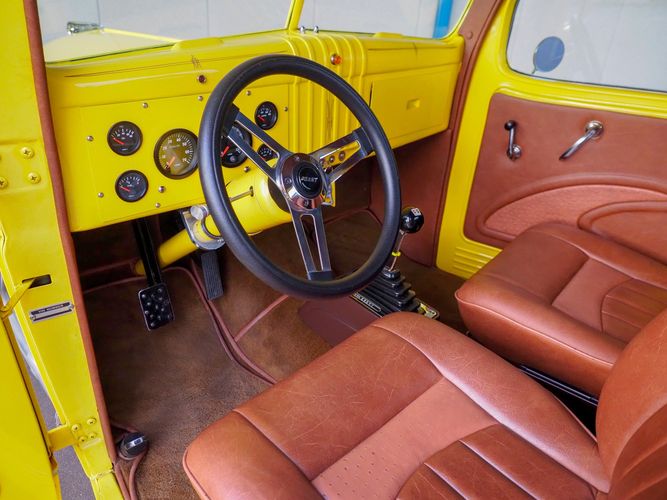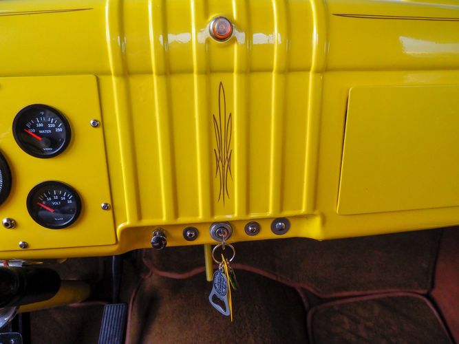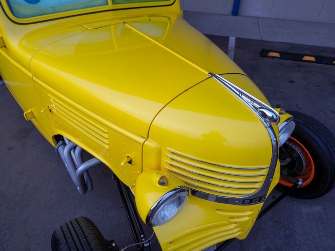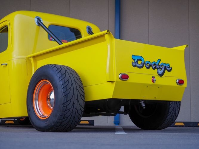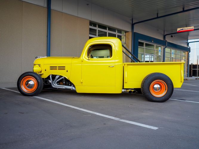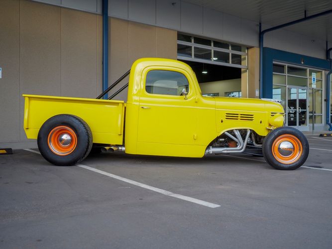 This is a one of one, custom 1940 Dodge pickup hot rod that will leave you speechless. The overall fit and finish of this build is fantastic. The body is all 1940 original dodge sheet metal sitting on a custom square tube chassis on coil overs. The 383 SBC with exhaust side pipes gives the car a great look and unmatched sound. The bed was made custom and is not original. A roll cage has been welded in professionally and feels natural to the build. The interior consists of leather door panels, headliner and bucket seats. A custom set of VDO gauges and a tilt column tie off the interior nicely. This is an eye catch anywhere you take it! It has won several shows and gets lot of attention. Overall this car drives down the road nice, has plenty torque making it great in the city, a comfortable interior, and great driver quality bright yellow paint. If your looking for a unique custom hot rod with a great fit and finish look no further!