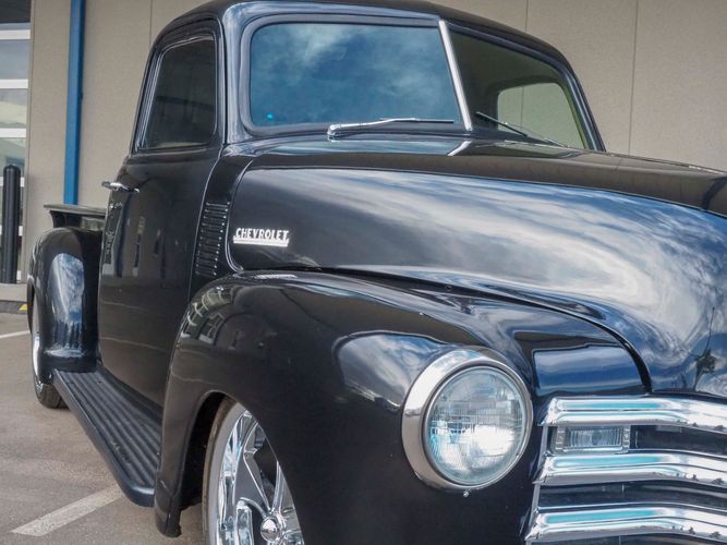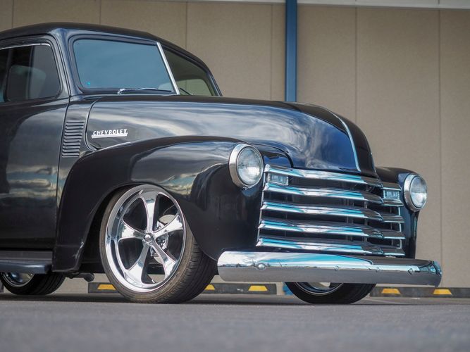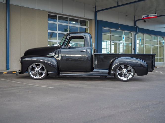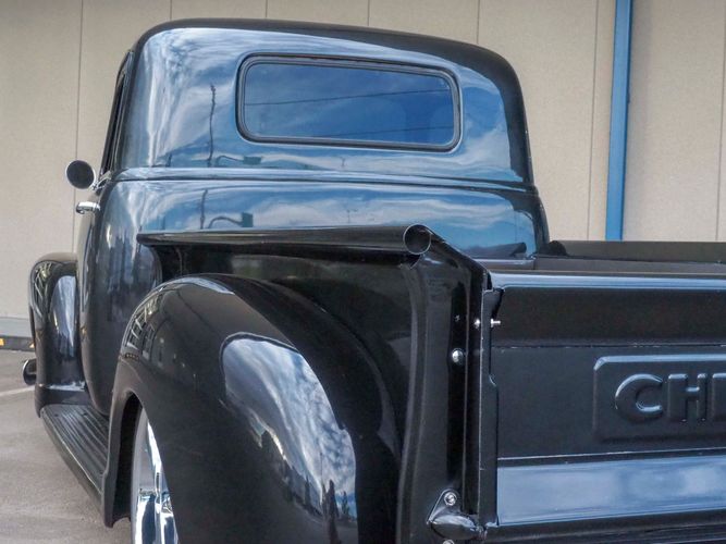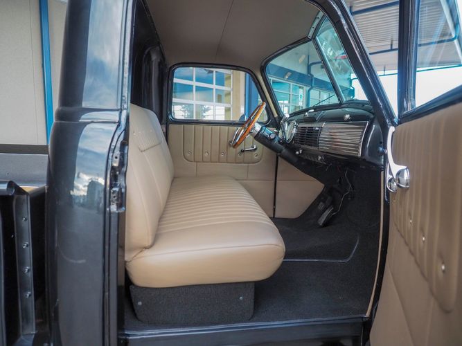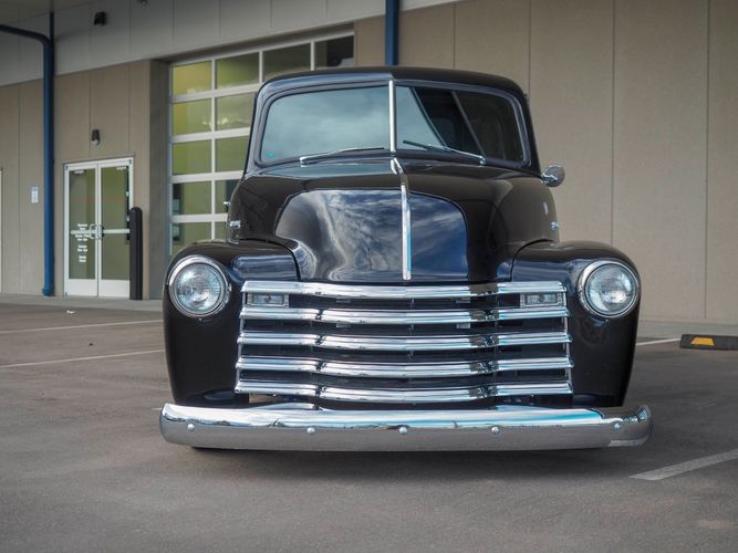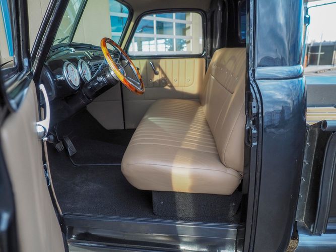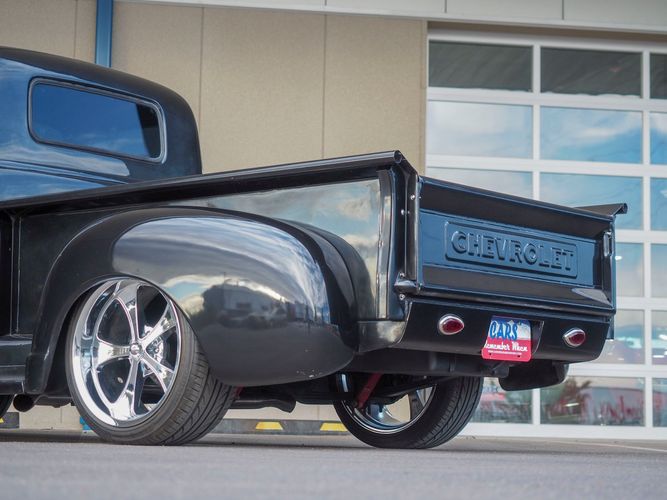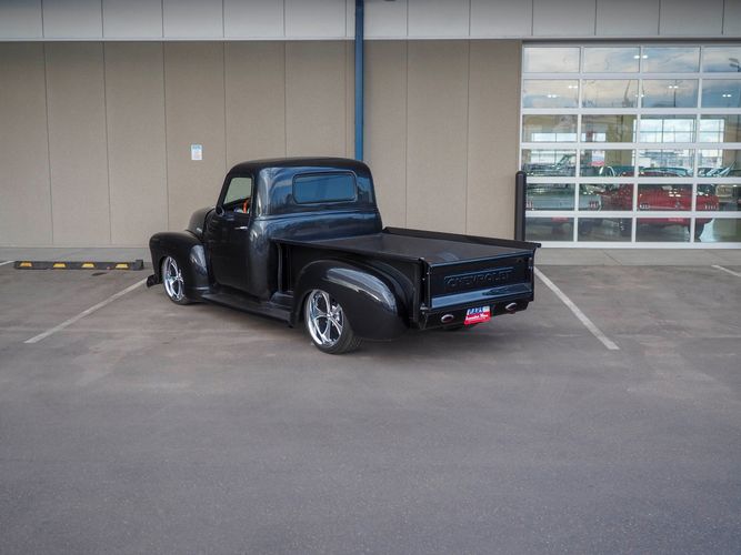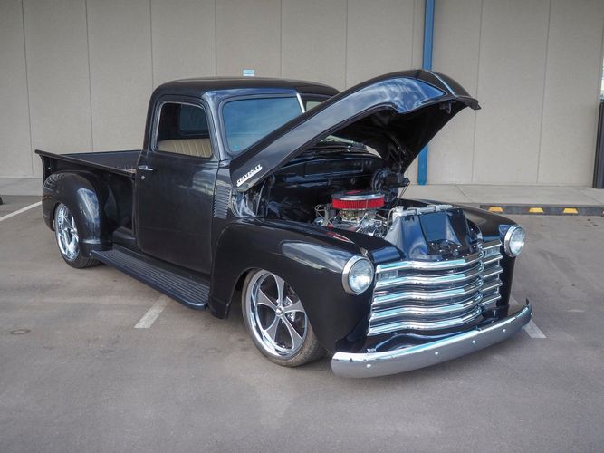 This 1947 Chevrolet 3100 pickup is drop-dead gorgeous and a head turner anywhere it goes! Finished in a beautiful Cadillac Black Pearl paint and lowered on 20'' chrome wheels this car has a sinister stance with nice curb appeal and features to back it up. Equipped with a 350 cubic inch V8, power brakes, front disc, and power steering make this truck fun and easy to drive. The brake master cylinder has been relocated to the firewall for better reliability and service. The wood bed is nicely done up above the fender wells for a clean finish. Both doors fit nice and close with ease. The custom interior is nicely done with custom gauges, a vinyl bench seat, new carpet, and door panels. The 350 engine has a nice size cam in it to give it a decent rumble at idle and good performance. This pickup sounds MEAN. Please see the video on our website to hear it for yourself! CALL TODAY 720-465-5104