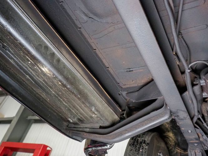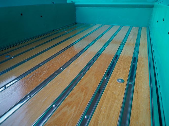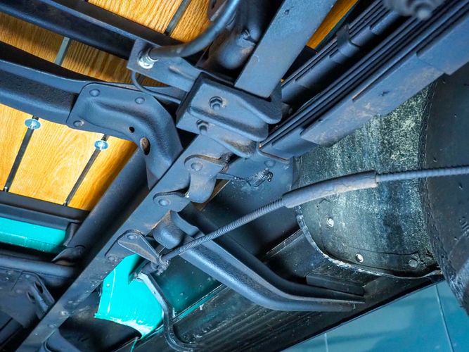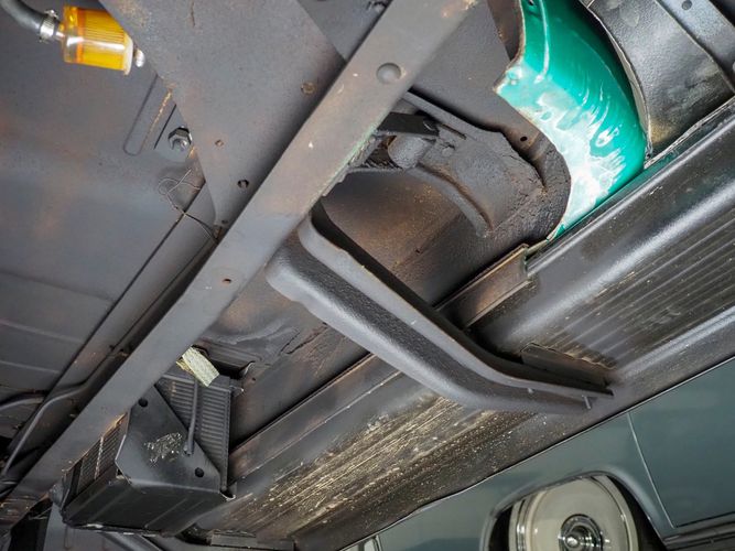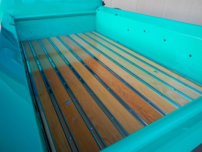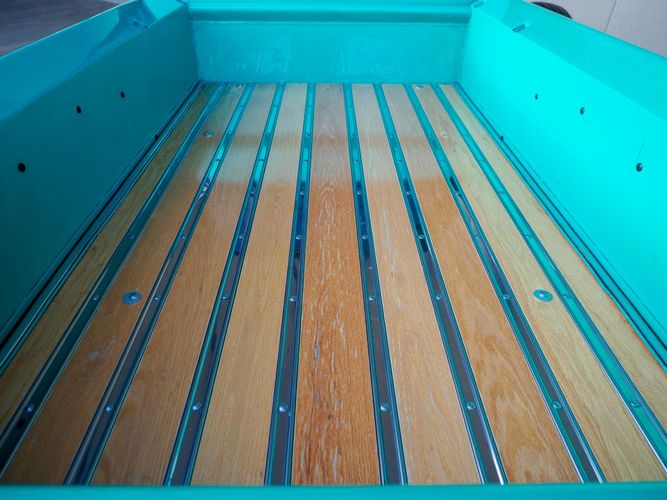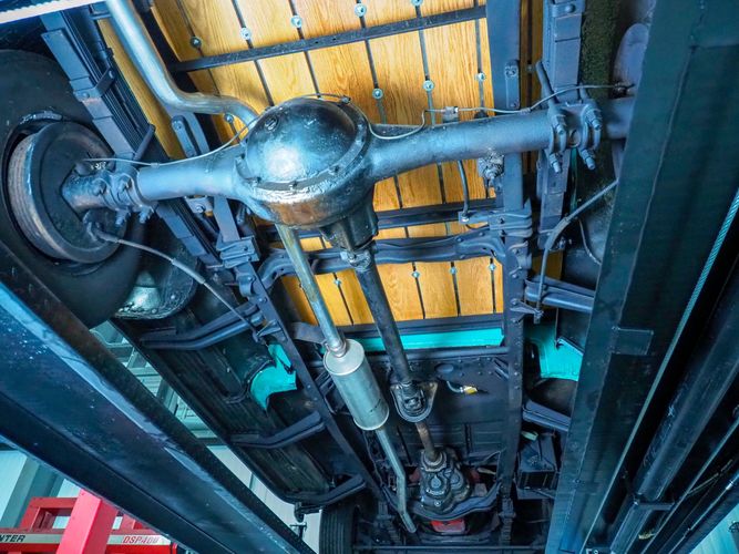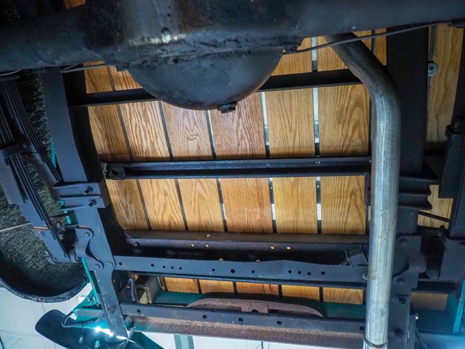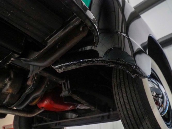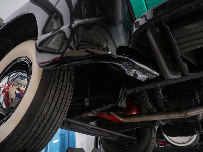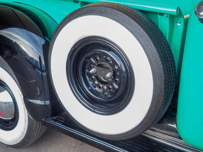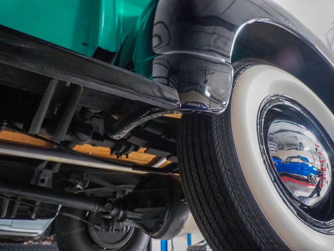 The two-tone green and black paint is a great color scheme for this 49' featuring nice pin stripping, newly chromed hub caps, nice wood bed and very straight original 1949 sheet metal. Upfront, the grille and bumper have been repainted to match the body nicely and give the truck a great look. The 5 window 3600s are highly desirable and hard to find in this great of shape. The undercarriage appears to be lightly restored with all new rubber and is very original. Overall, the body is in excellent shape and the pickup has smoked windows.