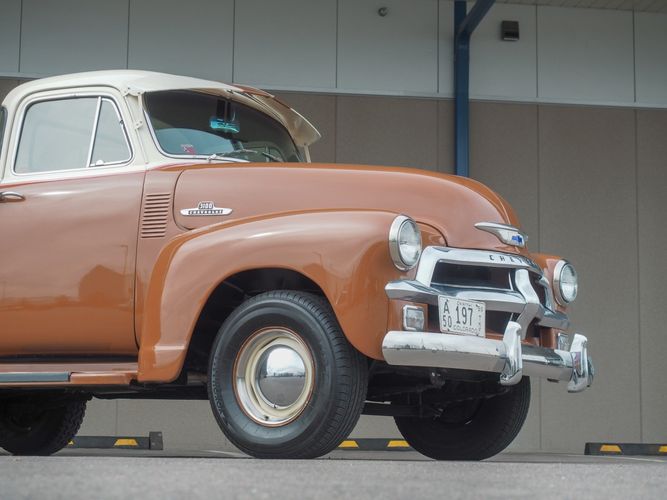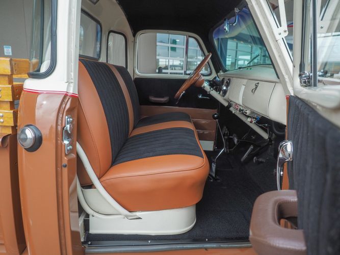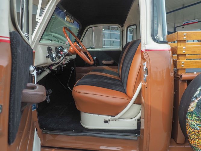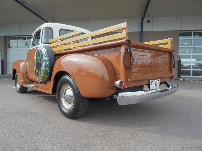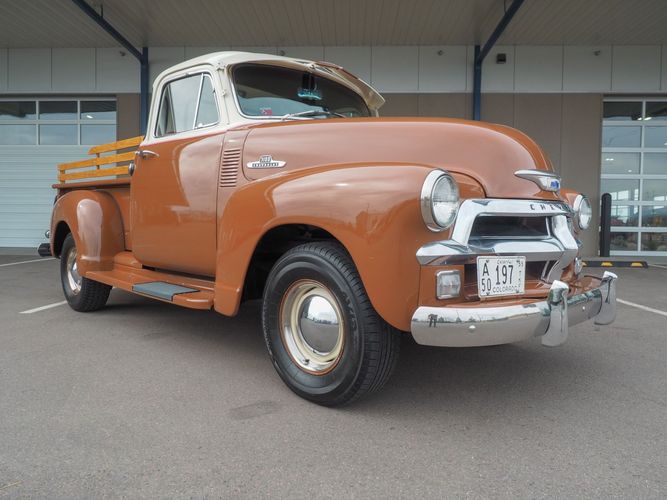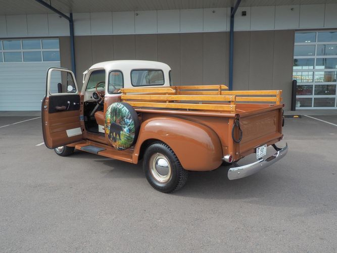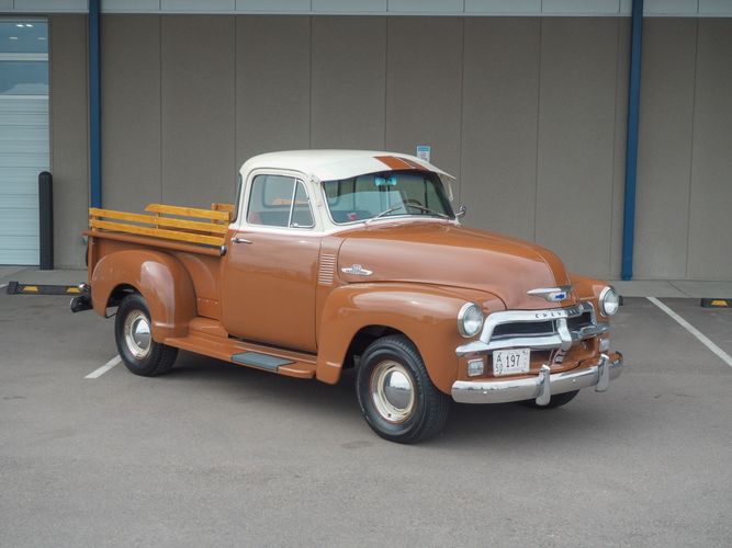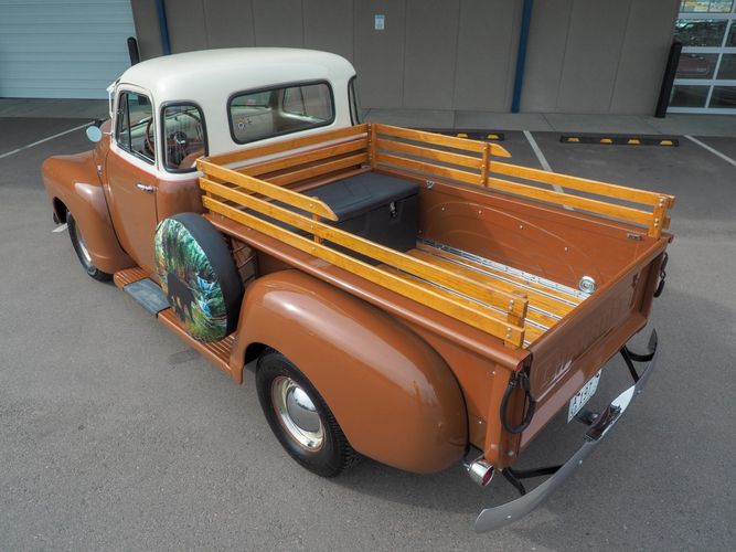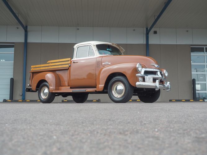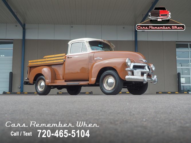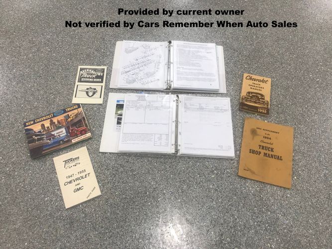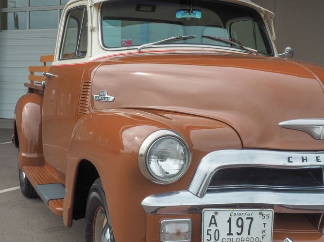 Offered by Cars Remember When is this very unique 1955 1st series pick up. The 1955 1st series was the last production run of the "Advanced-Design Series" pickup trucks that ran from 1947 - 1955. The 1955 1st series pick-up was unchanged from 1954 except for a modern open driveshaft design which is a significant upgrade from 1954. This truck is fitted with a modern 5-Speed manual transmission and 3.38 rear gears that allow for an ultra-smooth highway and city cruiser but with a nice 1st gear ratio to get off the line quickly. We think this truck drives excellent and is fun to drive with the floor-shift 5-speed. Equipped with what appears to be an original style 235 cubic inch I6 engine with an electric fuel pump. CALL TODAY 720-465-5104