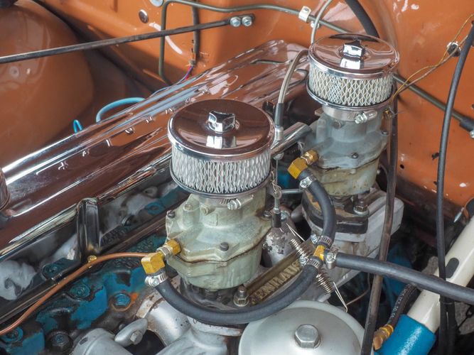 - Dual Rochester 1 barrel carburetors w/manual choke