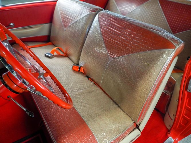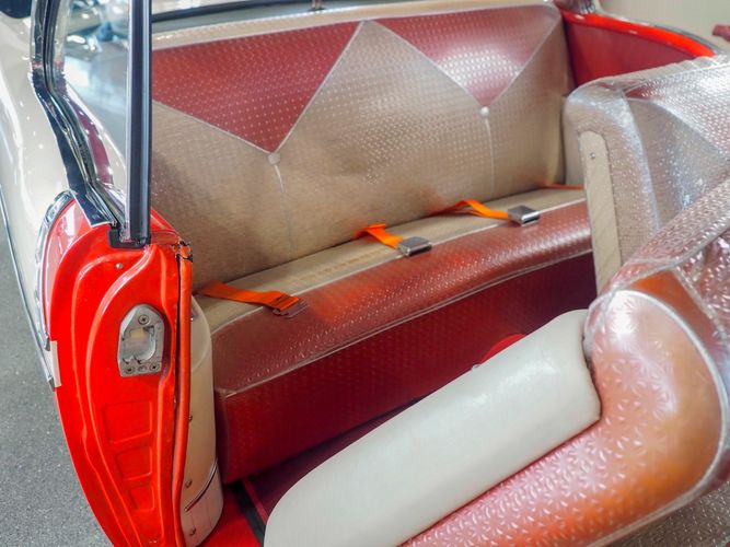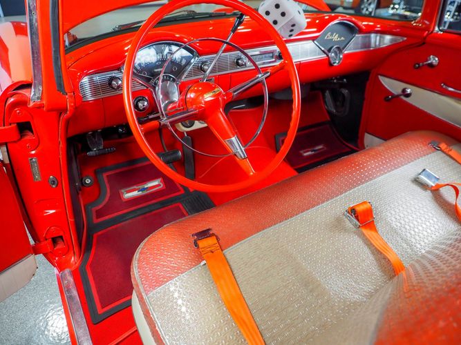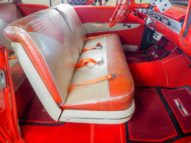 If you're itching to get behind the wheel of an undeniable timeless classic, it would be awfully difficult to do better than this 1956 Chevrolet Bel Air. It's a member of a class of mid-'50s Chevys that forged an unbreakable link as part of true American car culture and, with its outstanding curb appeal and meticulously restored look, would be equally at home making an impact on the local car show circuit as it would pulling focus on the boulevard. The red and white two tone combo is to die for and will catch everybody's attention. The interior is put back to exactly how the car would have looked in 1956. The seat upholstery in this car is special because it was shrinked wrapped sometime ago to preserve them for the future. The original seat upholstery looks to be in excellent shape due to this. The 265 and powerglide combo are freshly rebuilt and run great. This is an excellent, comfortable, stylish cruiser that is screaming to get on the road!