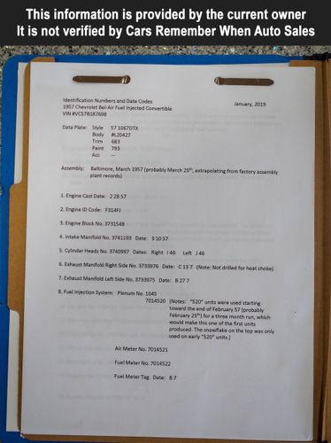 Based on its unending appeal to this day, the 1957 Chevrolet remains one of the most iconic representations of American automobile styling from the 20th century. When it came to ordering one back then, the Bel Air convertible was the premium member of the “See America First” Chevrolet family, and this Bel Air is a stunningly correct example. The purpose of this restoration was for the car to be professionally judged. Please look through all the photographs and make sure to see pictures of the date codes on different components at the end of the photo gallery. Available for sale by Cars Remember When Auto Sales. CALL TODAY 720-465-5104