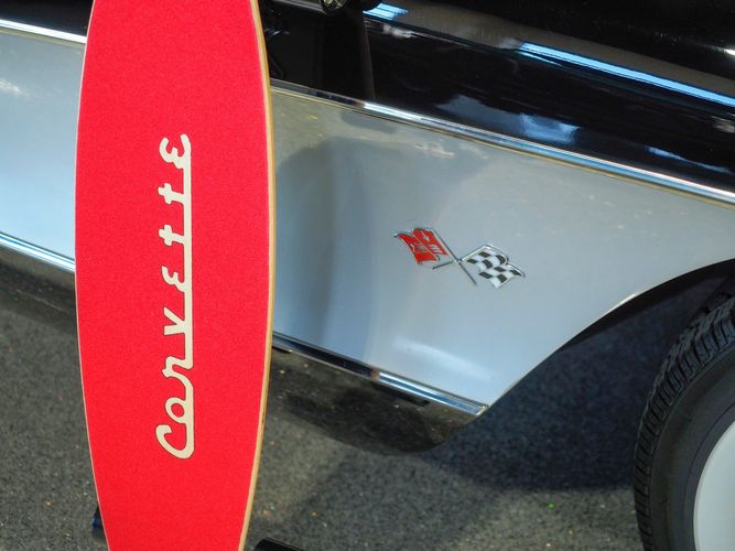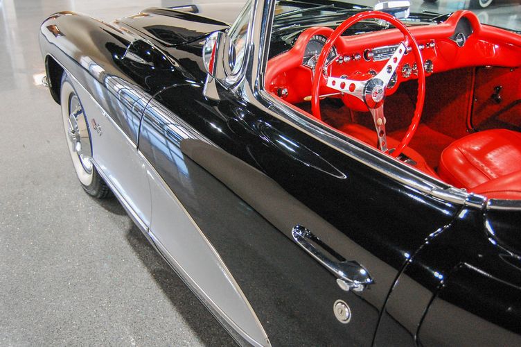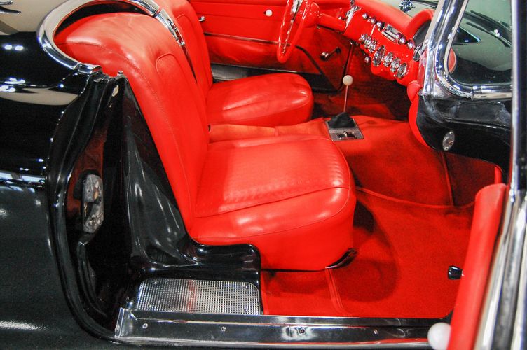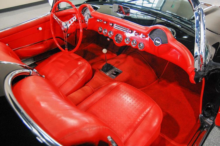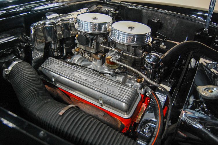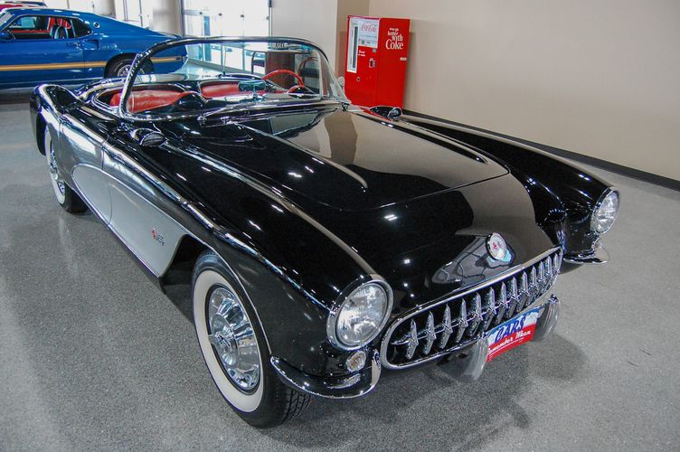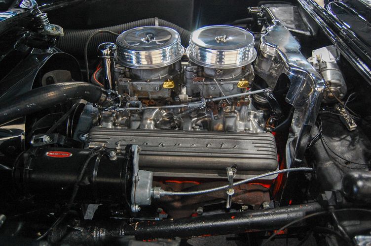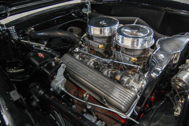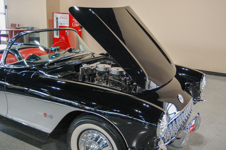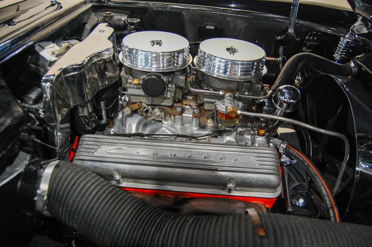 Visually the 1957 model was a near-twin to 1956. Engine displacement increased to 283 cu in (4.6 L), fuel injection became optional, and a 4-speed manual transmission was available after April 9, 1957. Fuel injection first saw regular use on a gasoline engine two years prior on the 1955 Mercedes-Benz 300SL "Gullwing". Although the Corvette's GM-Rochester mechanical fuel injection used a constant flow system, as opposed to the diesel style nozzle metering system of the Mercedes', the Corvette's engine nevertheless produced about 290 bhp. This was underrated by Chevrolet's advertising agency for the 283 bhp at 6200 rpm and 290 lb⋅ft of torque at 4400 rpm 283 small-block V8 "One HP per cubic inch" 1 hp per 1ci slogan, making it one of the first mass-produced engines in history to reach 1 hp/in³. Pushed toward high-performance and racing, principally by Zora Arkus-Duntov who had raced in Europe, 1957 Corvettes could be ordered ready-to-race with special options. Fuel injection was in short supply and 1,040 Corvettes with this option were sold. Rare options: RPO 579E 283 hp engine with fresh air/tach package, RPO 684 heavy-duty racing suspension, RPO 276 15 by 5.5 in wheels, RPO 426 power windows, RPO 685 4-speed transmission.