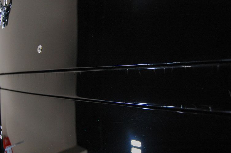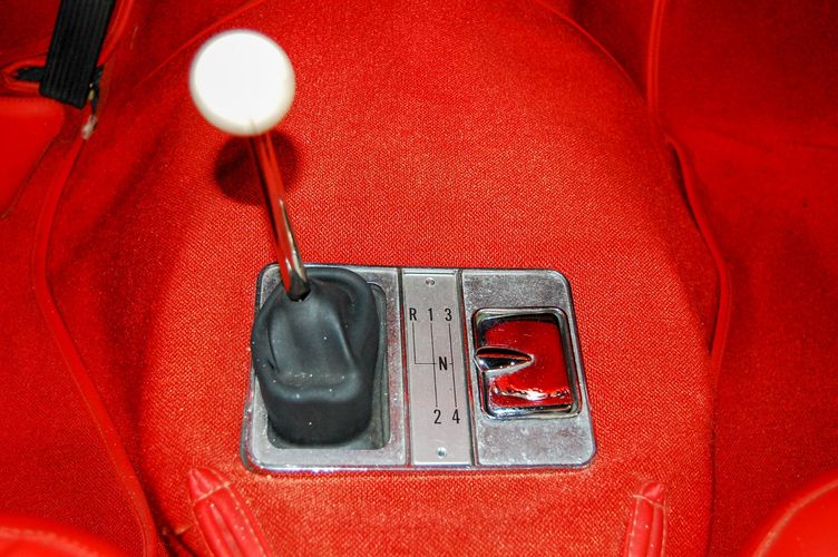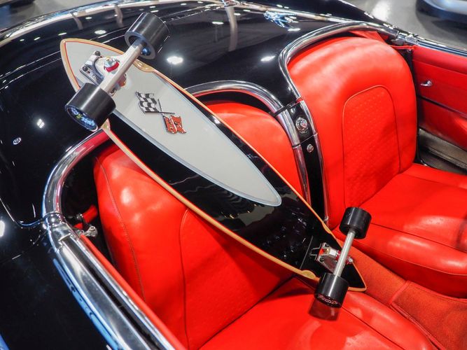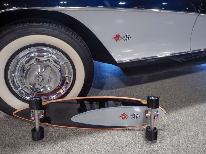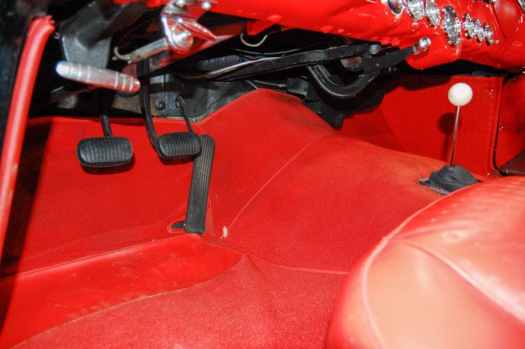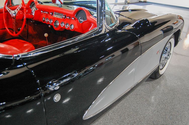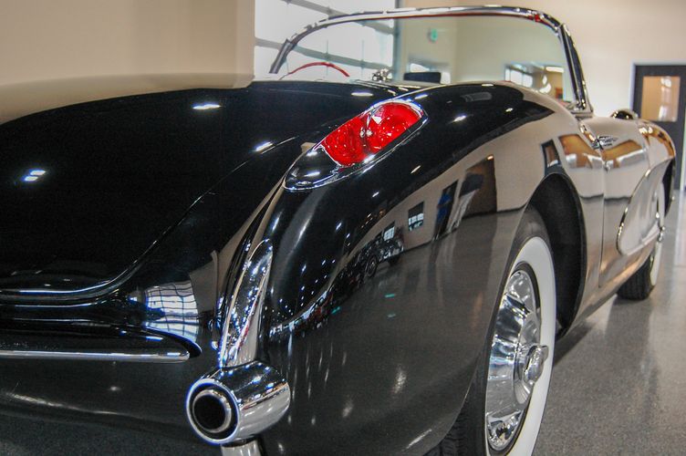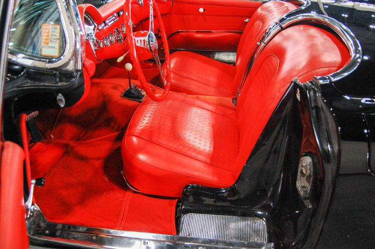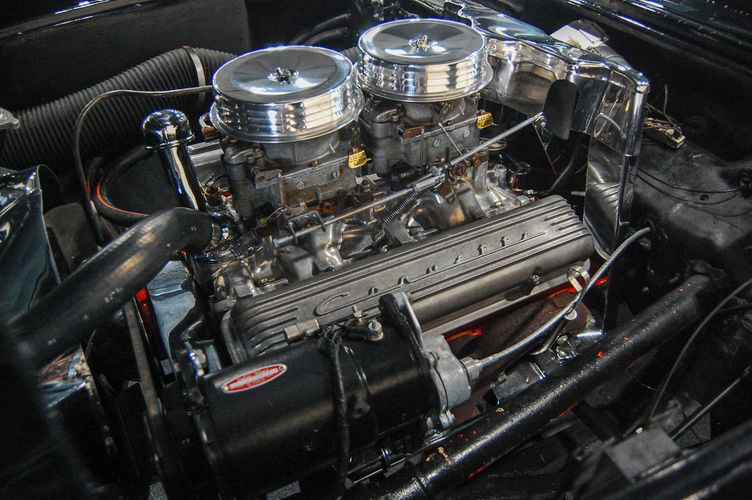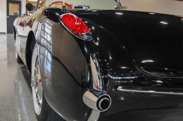 Visually the 1957 model was a near-twin to 1956. Engine displacement increased to 283 cu in (4.6 L), fuel injection became optional, and a 4-speed manual transmission was available after April 9, 1957. Fuel injection first saw regular use on a gasoline engine two years prior on the 1955 Mercedes-Benz 300SL "Gullwing". Although the Corvette's GM-Rochester mechanical fuel injection used a constant flow system, as opposed to the diesel style nozzle metering system of the Mercedes', the Corvette's engine nevertheless produced about 290 bhp. This was underrated by Chevrolet's advertising agency for the 283 bhp at 6200 rpm and 290 lb⋅ft of torque at 4400 rpm 283 small-block V8 "One HP per cubic inch" 1 hp per 1ci slogan, making it one of the first mass-produced engines in history to reach 1 hp/in³. Pushed toward high-performance and racing, principally by Zora Arkus-Duntov who had raced in Europe, 1957 Corvettes could be ordered ready-to-race with special options. Fuel injection was in short supply and 1,040 Corvettes with this option were sold. Rare options: RPO 579E 283 hp engine with fresh air/tach package, RPO 684 heavy-duty racing suspension, RPO 276 15 by 5.5 in wheels, RPO 426 power windows, RPO 685 4-speed transmission.