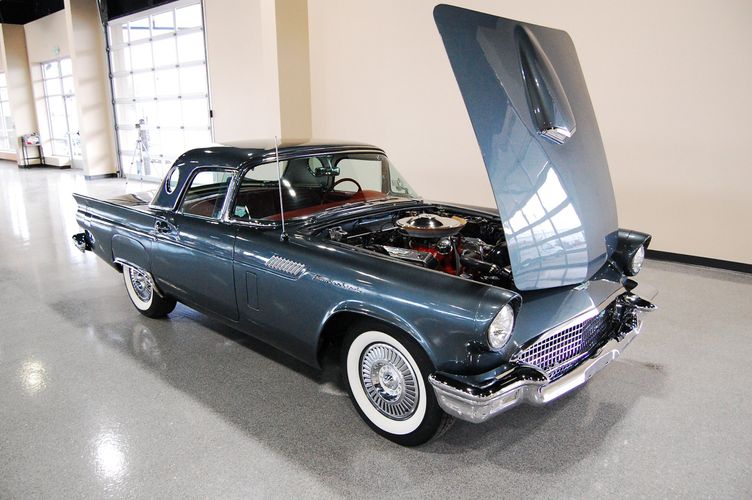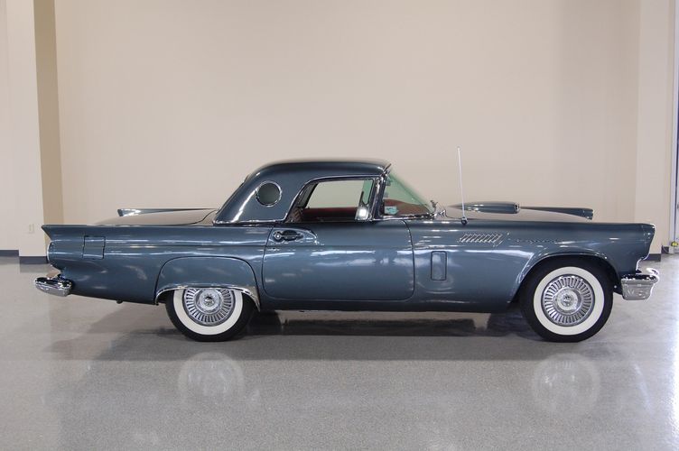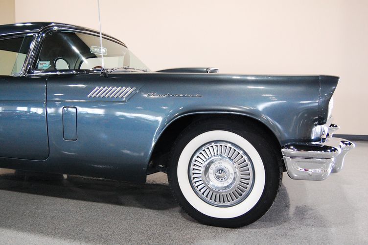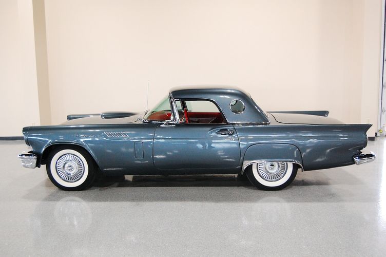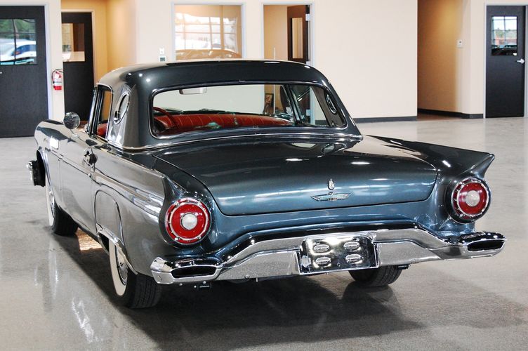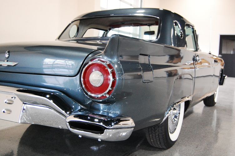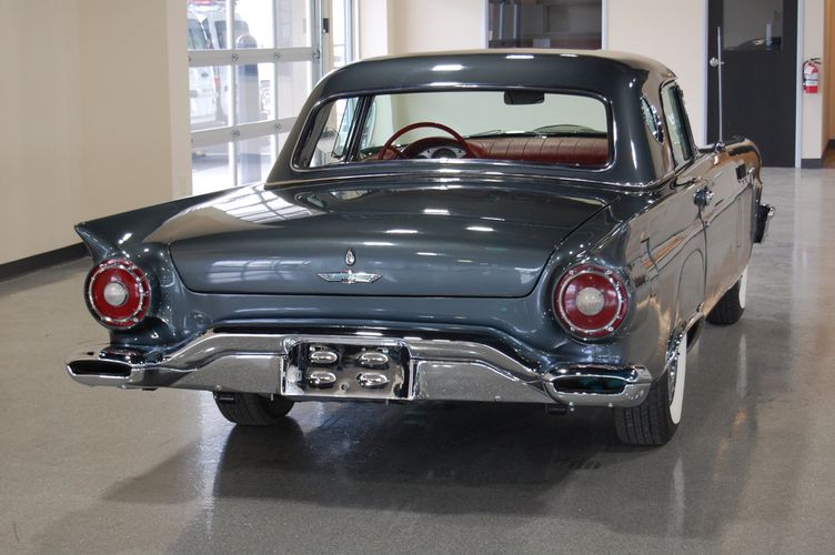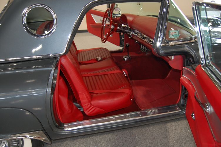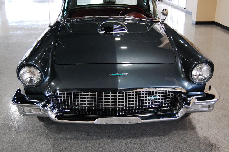 1957 was the last year for the 1st generation "little bird" Thunderbird. Being the first two seat car by Ford since the 1938 model year, it created a lot of excitement at the time. This car was advertised as a personal luxury car and competed with the Corvette, although the Thunderbird was more of a niche market focusing on comfort over speed. This particular Thunderbird is rated by Hagerty valuation as "good" with a insurance payout appraisal of $51,200. Equipped with some newer parts to increase drivability, this Thunderbird drives extremely smooth and feels 100% stock like you were in 1957 again. The C3 transmission drives much smoother then the original "Ford-o-Matic" and allows for it to be driven to car shows in comfort. Equipped with factory power windows and a power seat make this car feel cutting edge for the time. The added updated parts make this car much more dependable then the original configuration. The gun metal exterior with red interior is one of the most sought after combinations of the Thunderbird, this was exactly how this car looked from the factory in 1957.
