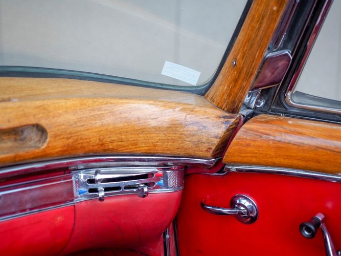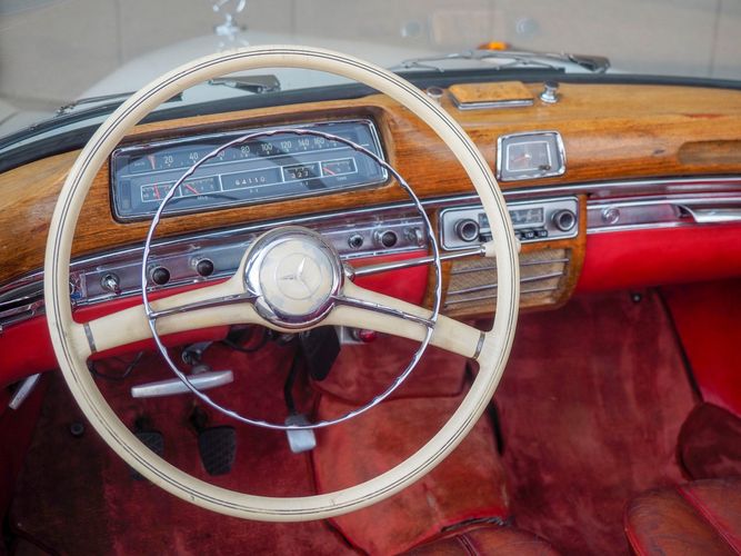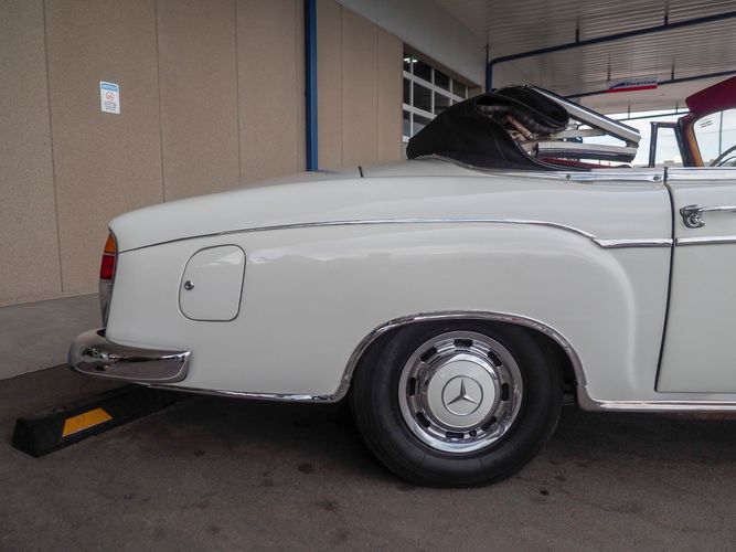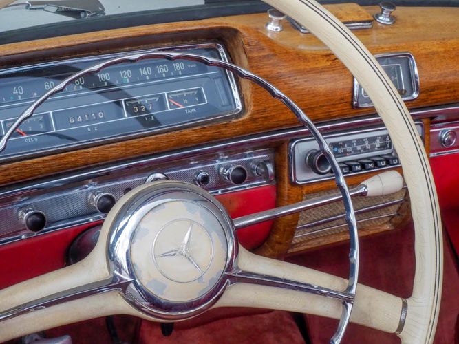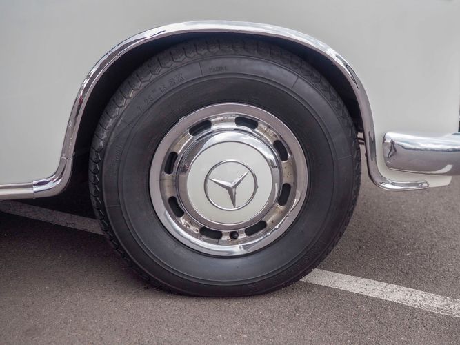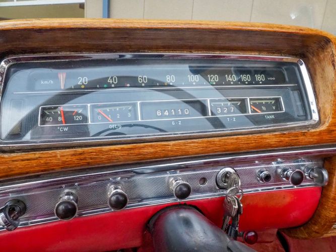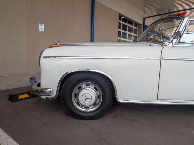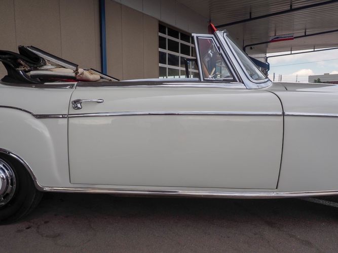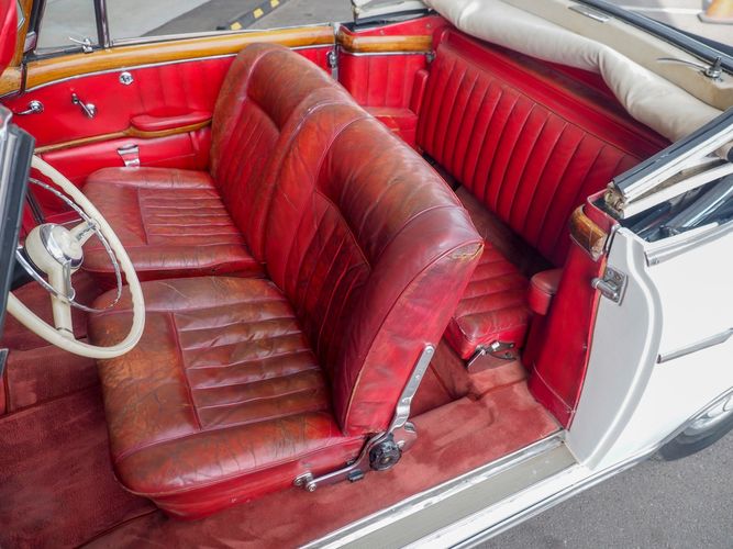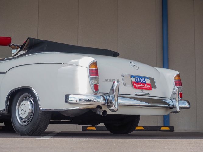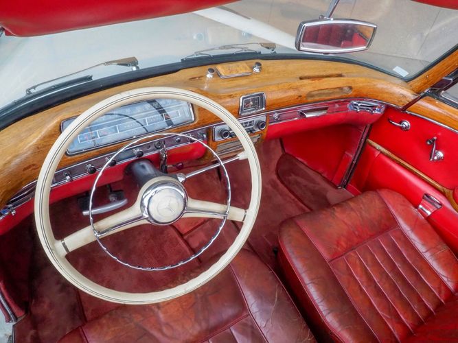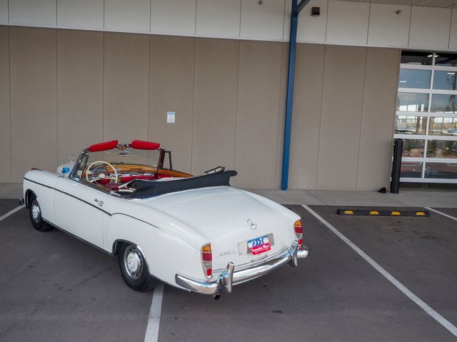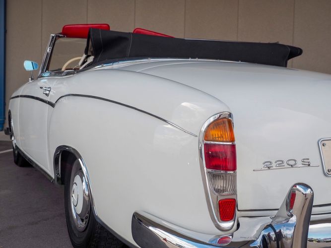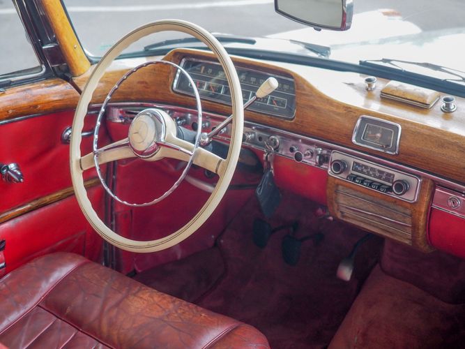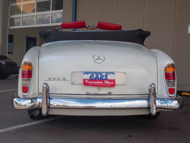 This specific 220S went through a restoration in Germany and got new paint and interior upholstery. (See detailed restoration photos at end of photo gallery) Since restored, it was imported to the United States and was stored in a garage in Grand Junction, Colorado and driven to occasional car shows. It has lived the majority of the last 30 years in a garage.