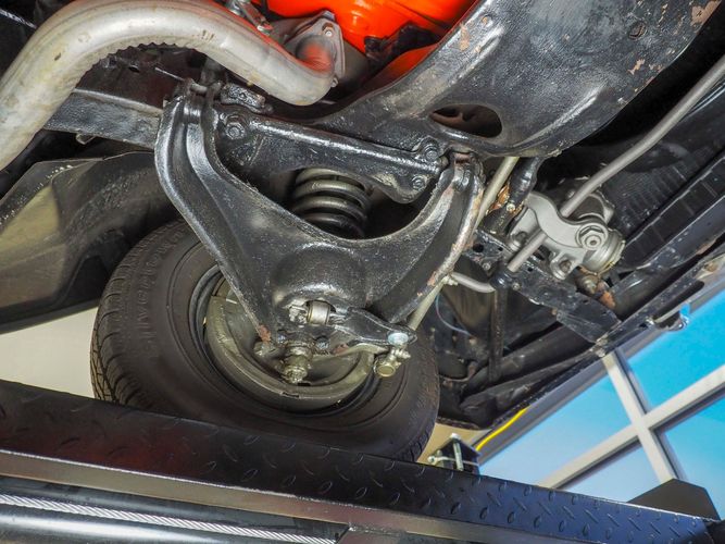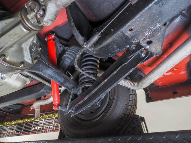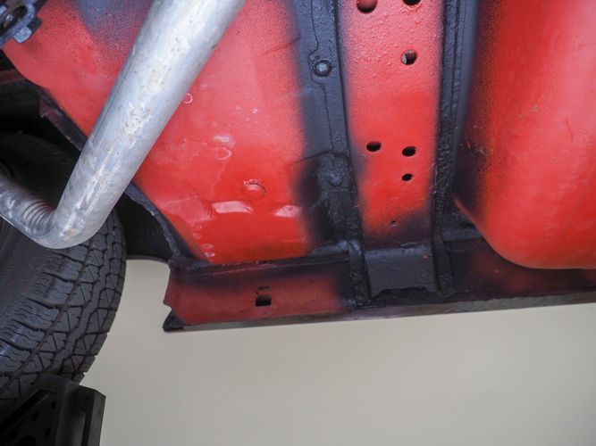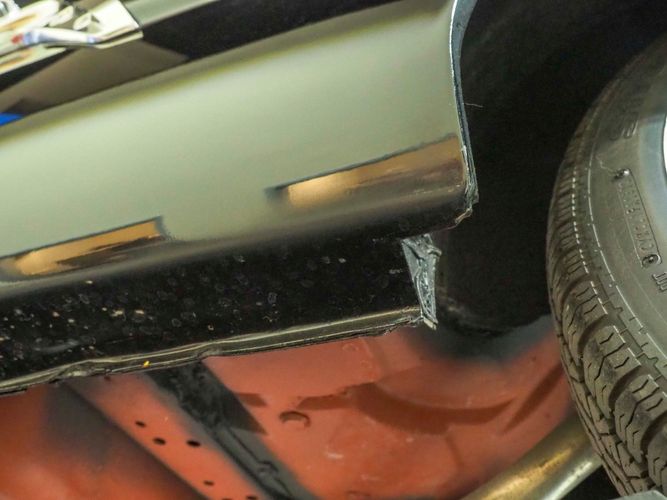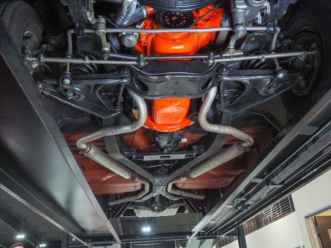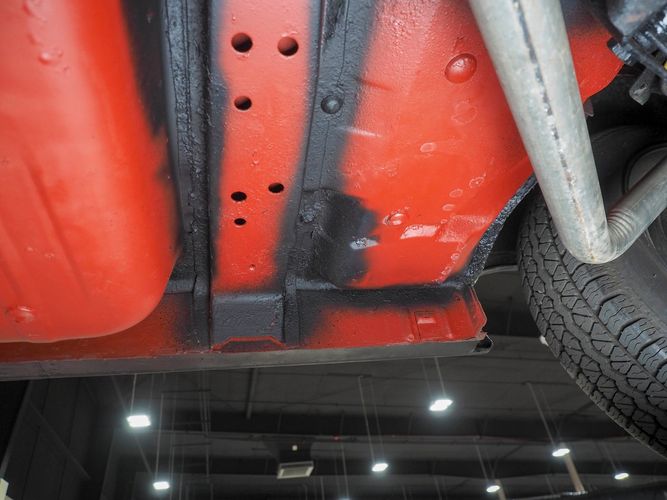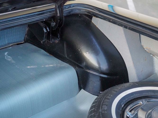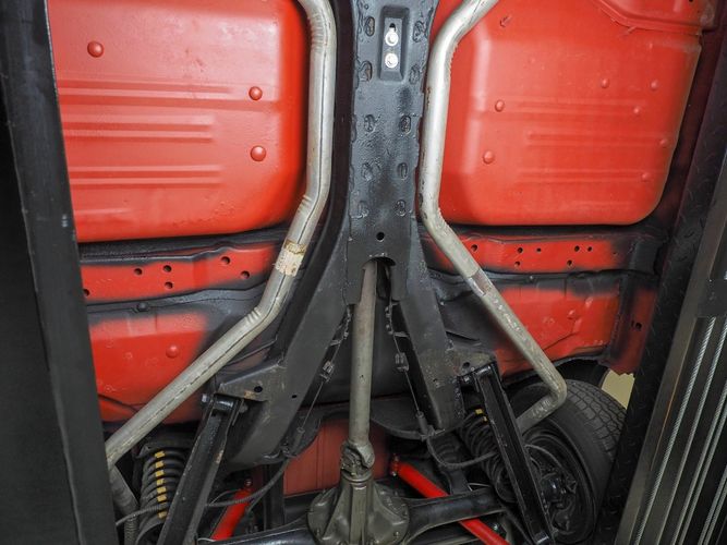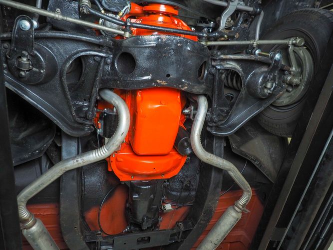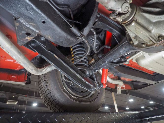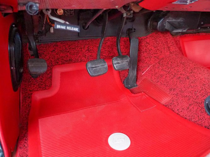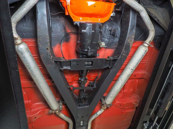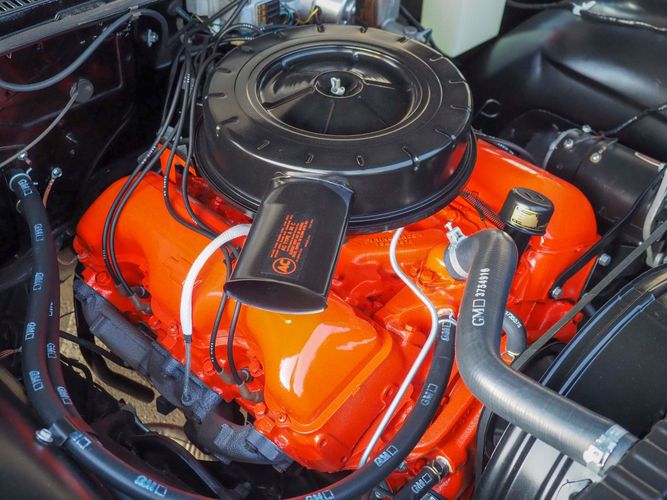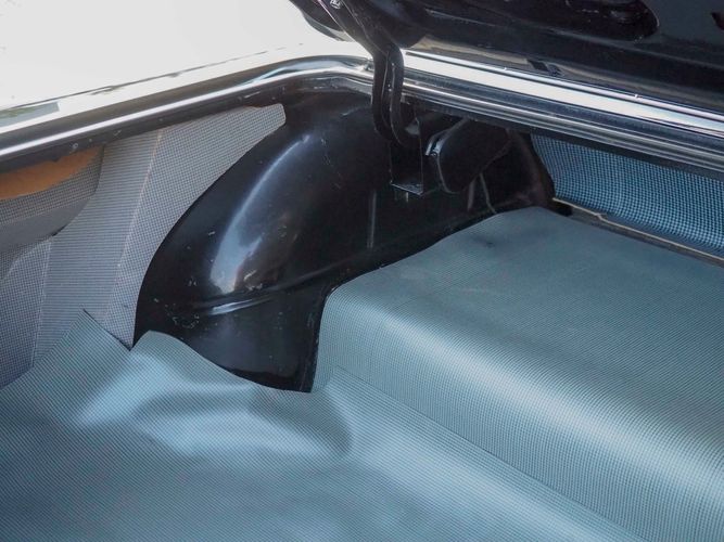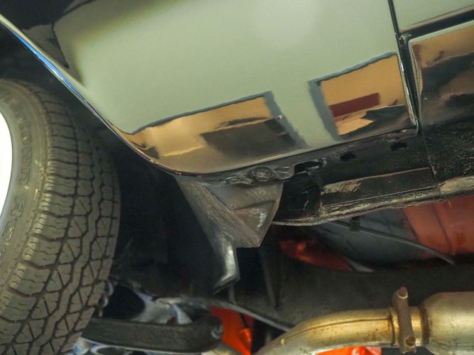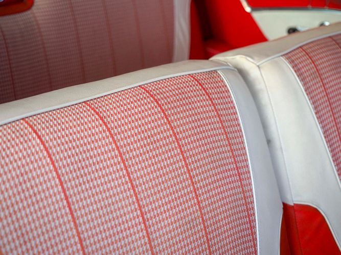This appears as an original Tuxedo black car that was restored beautifully. The body appears laser straight with a deep gloss shine. All the chrome and trim is in excellent condition and the fit and finish of the body panels are great. Restored red and white interior is simply an amazing color combo and compliments the Tuxedo black nicely.