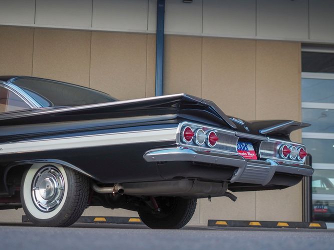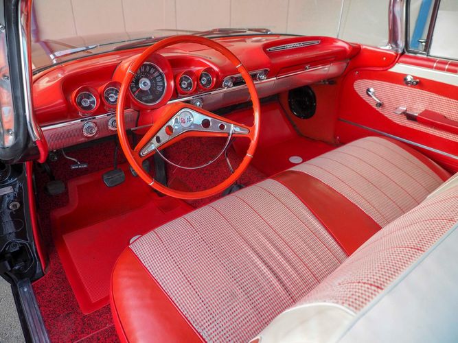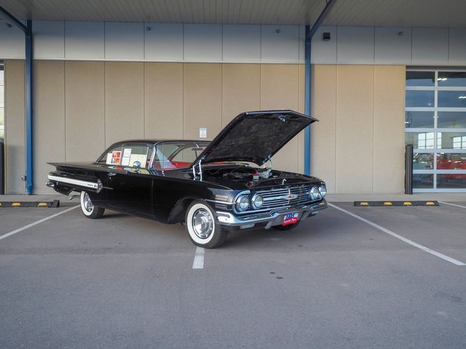 Offered by Cars Remember When is this highly documented 1960 Impala equipped with a 348 cubic inch V8, 4-speed manual transmission and a beautiful Tuxedo Black paint over a red & white interior. This car is absolutely gorgeous and runs and drives excellent. Highly documented with original Delco warranty paperwork, and original title.