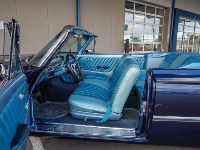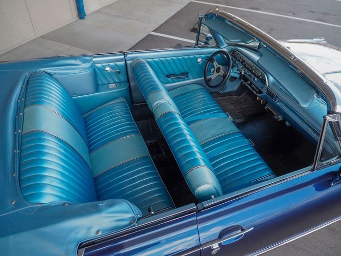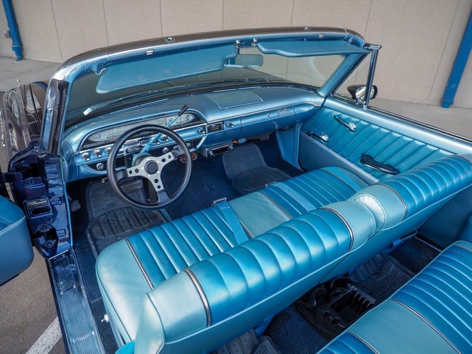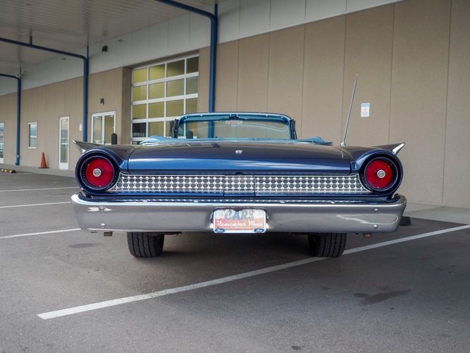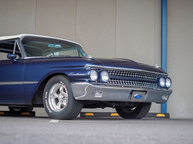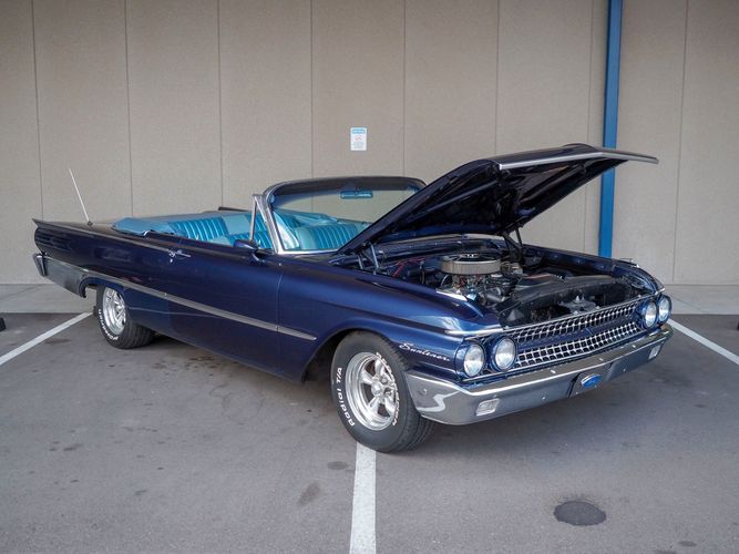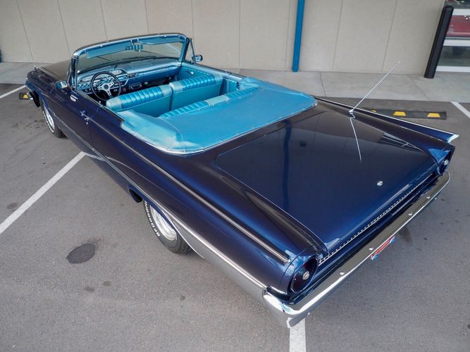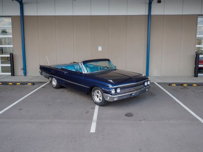 Offered by Cars Remember When is this gorgeous 1961 Ford Galaxie Sunliner convertible equipped with a powerful 390 V8, Cruise-O-Matic automatic transmission, power steering, power brakes, and a power-operated convertible top. The 390 V8 is fully rebuilt and has a believed to be 3,500 miles on it. The transmission was believed to be rebuilt at the same time. This car is an absolute pleasure to drive; full-size comfort, comfortable interior, power-assisted brakes & steering, and a smooth ride quality. The interior was reupholstered sometime ago but driven very little. The exterior Dark Portofino Blue Pearl paint is a unique color that fits the body lines perfectly. Paired with a white top and chrome American Racing wheels give it a great stance. Overall, this Galaxie is a well cared for car that drives amazing. CALL TODAY 720-465-5104