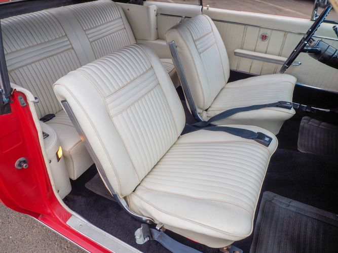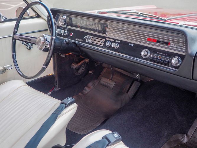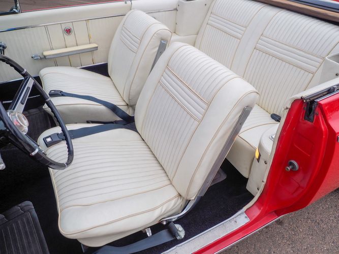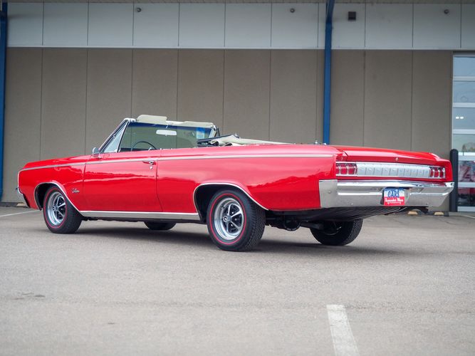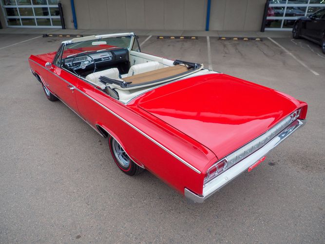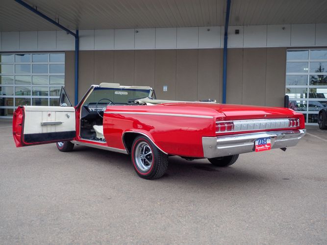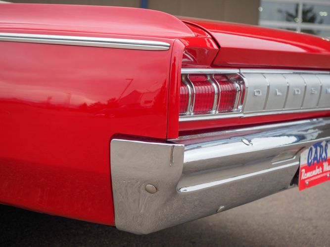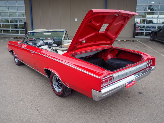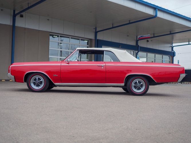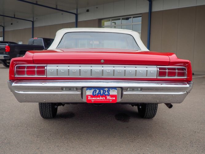 Offered for sale is this rare and seldom seen 1964 Oldsmobile Cutlass Convertible. The Cutlass F85 models had a few more option boxes ticked when ordered from GM than the base Cutlass. One such option was a more powerful engine, in the form of an ultra-high compression 330ci V8. Finished in a driver quality red paint finish over a white top and interior. Also with a number of great options, in the form of power top, power steering, and power brakes. The car’s compact body style is complimented with the addition of Magnum 500 442 Style OEM wheels that are reportedly wrapped with BF Goodrich red radial tires. CALL TODAY 720-465-5104