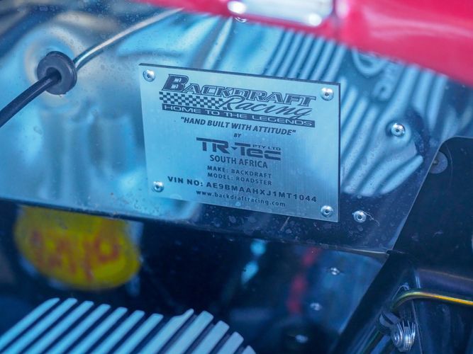 Backdraft Racing roadsters, manufactured in South Africa and distributed worldwide, are redefining the muscle car. With a 92-inch wheelbase offering a bit more legroom and cockpit comfort, the roadsters are two inches longer than the original AC Bristol and Shelby Cobras. Backdrafts sport a low and menacing stance, having rear fender haunches that appear disproportionately large, giving the car a pouncing, serpent-like (small wonder) posture. Complete with a square tube chassis sporting BMW E36 suspension w/independent rear and 4-wheel disc brakes.