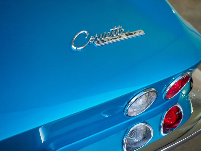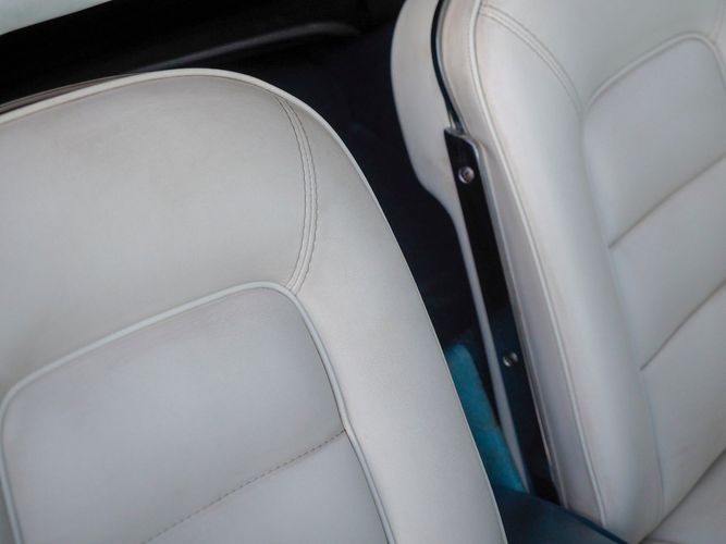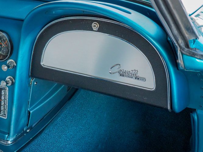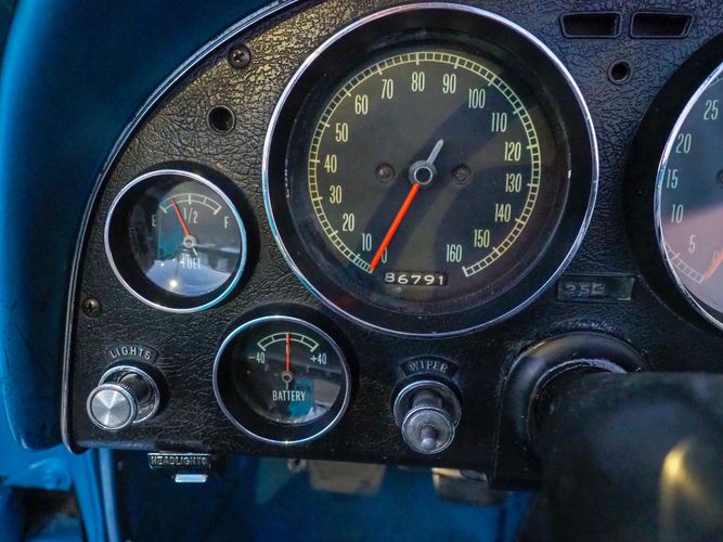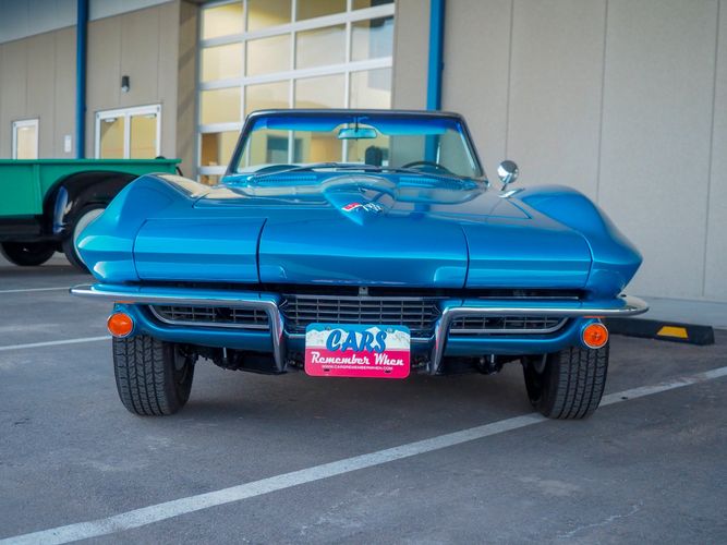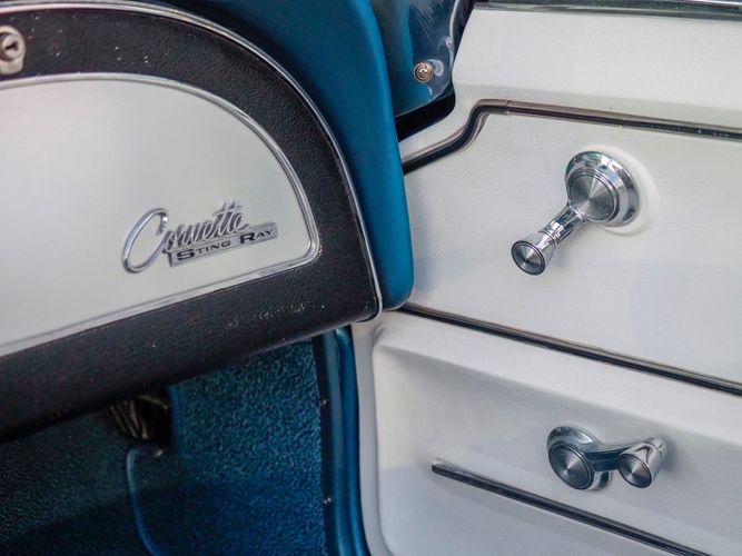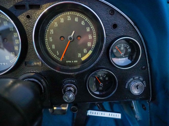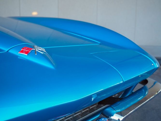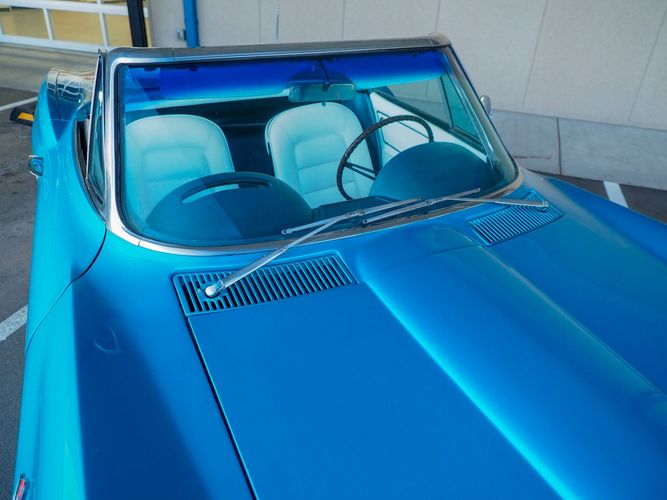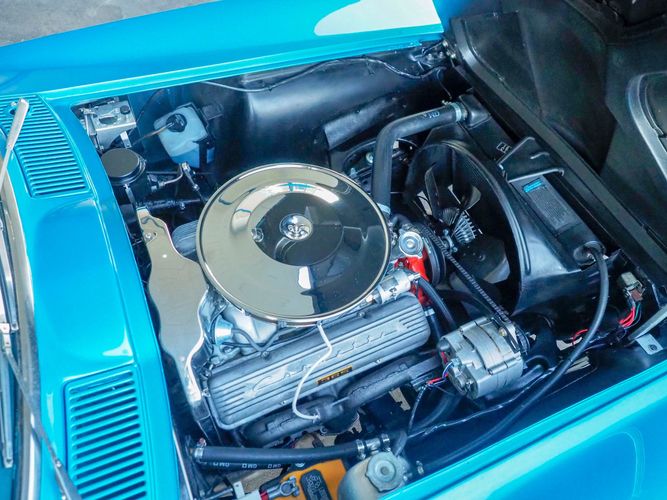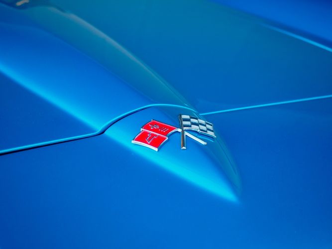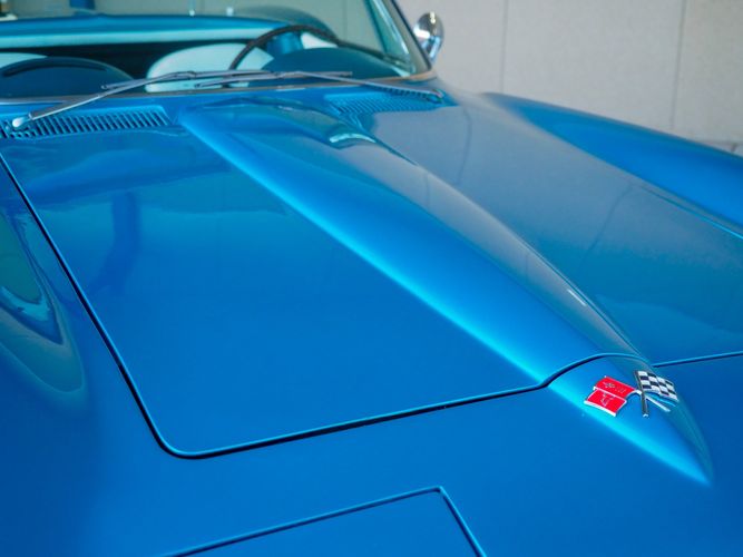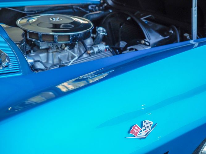 This 1965 Chevrolet Corvette convertible has its original numbers-matching, 327 cubic-inch 365 horsepower L76 V8. That makes this well-presented example significant, rare, and absolutely cool. Finished in a factory correct Nassau blue paired with a white top, the overall presentation is fantastic. The body is in excellent shape with straight lines, correct trim and emblems topped off with knock-off wheels. The overall appearance is very close to how it looked new in 1965. The Nassau blue is a fantastic color for a convertible and pairs nicely with the white top and white/blue interior. A matching Nassau blue hardtop is also included!