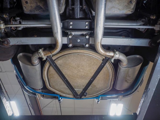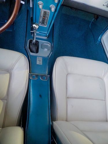The interior is lightly restored with new seat upholstery and carpet. The dash and console appear to be in factory original condition and are in excellent shape. The gauges show some nice patina and appear to be factory original and untouched! The bucket seats are comfortable and the center console housing the 4 speed ties everything together nicely.
