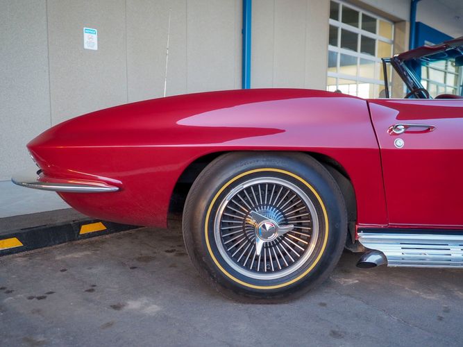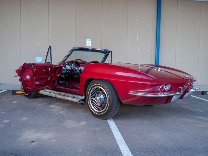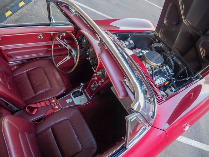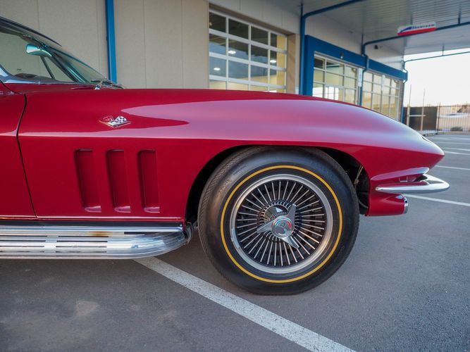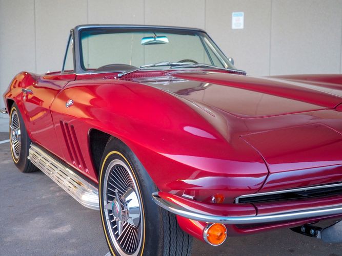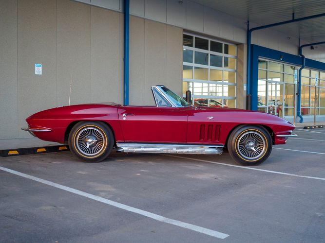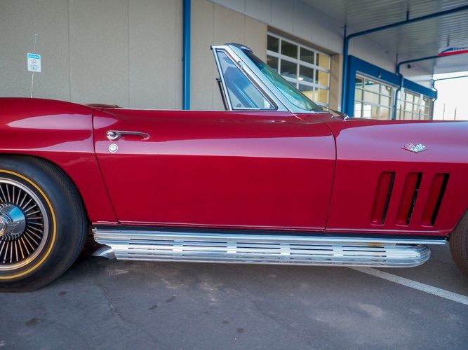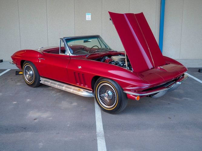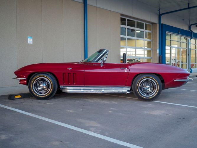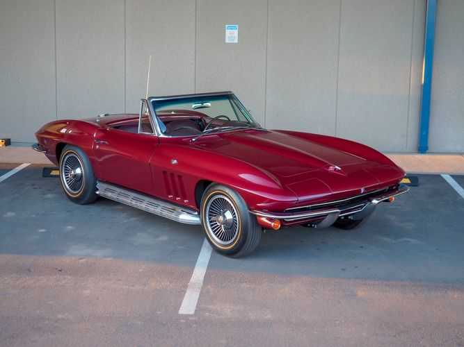 With Corvettes, you either get a car you shouldn't drive (matching numbers trailer queen) or a car that you can't resist driving. This 1965 Chevrolet Corvette convertible falls into the latter category. Equipped with a ZZ4 350 small block, original 4-speed, side pipes, cold A/C and a fantastic Milano red paint finish. If you want a mid-year 'Vette to drive, this '65 delivers all you could want and more. This Corvette is the best of both worlds; included with the sale is the original numbers matching 327/300hp motor.