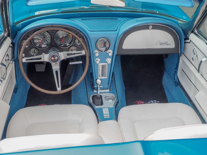 Nassau Blue over white bucket seat interior