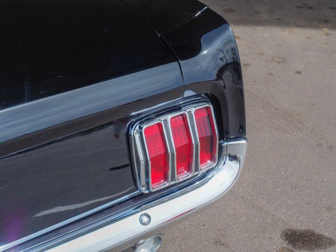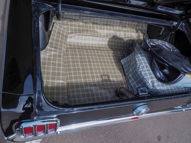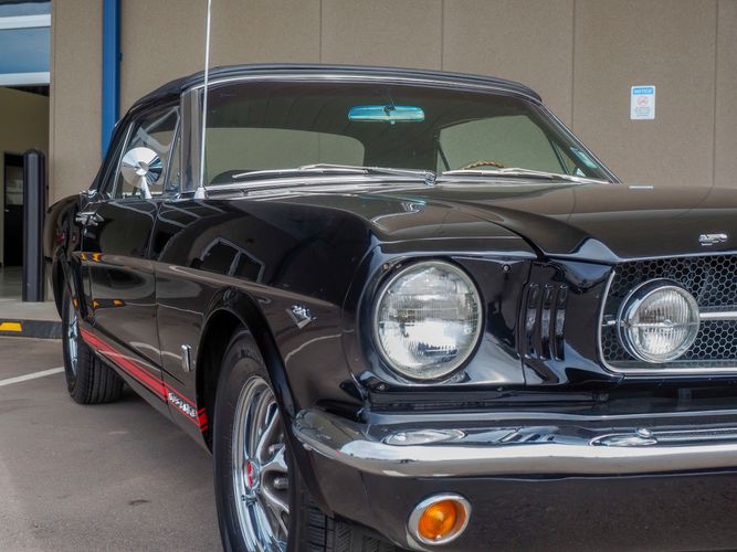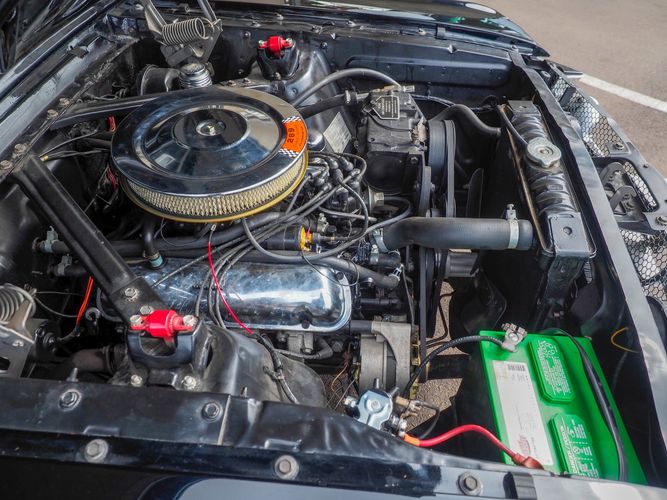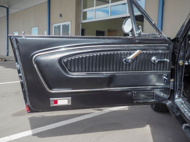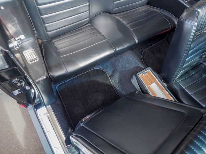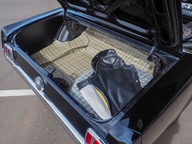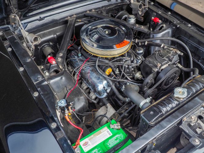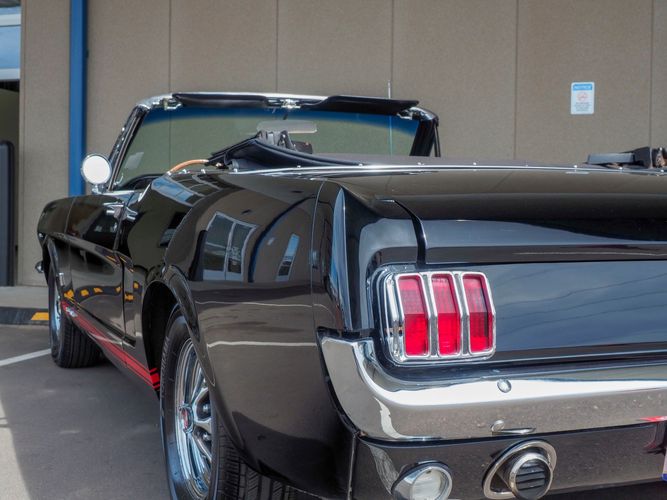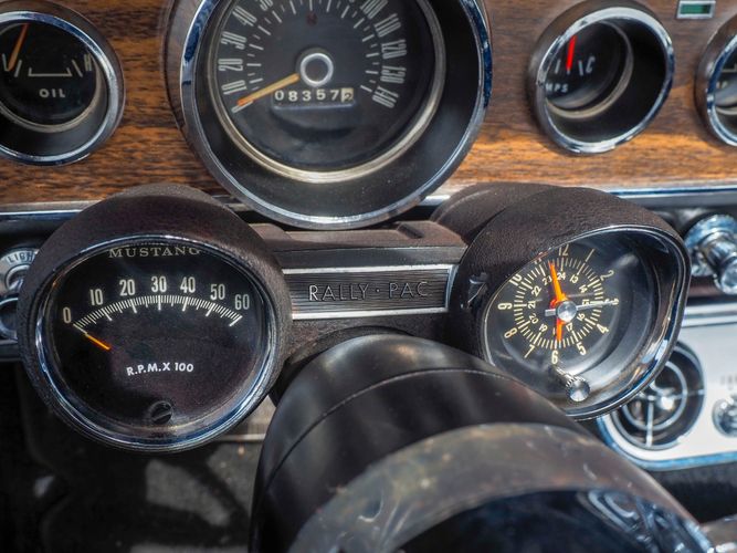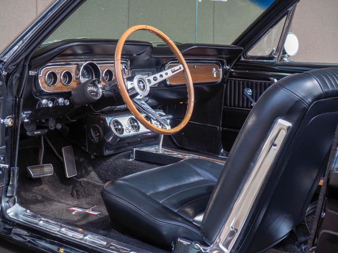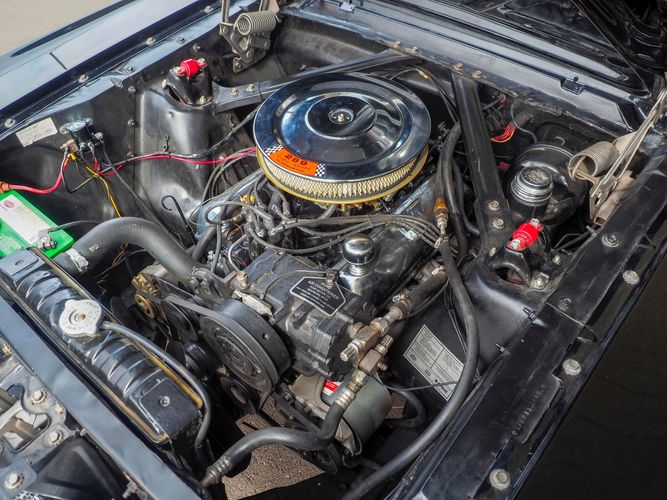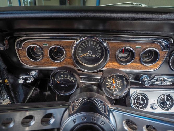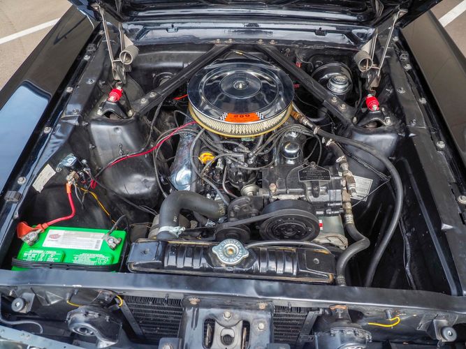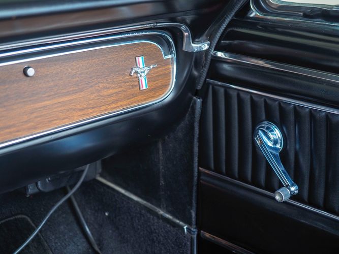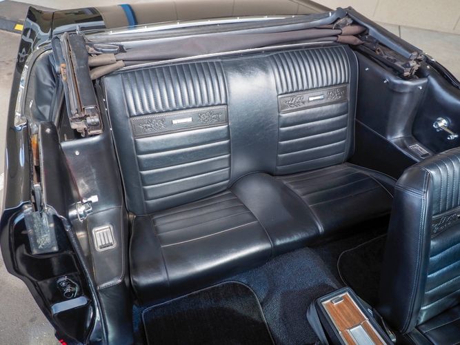 It is sporting a triple black color combo with red rally stripes across the side complete with GT badging. The black exterior paint job is very high quality and has a great shine to it overall. The power convertible top cover appears to be in excellent shape. Riding on original style wheels give it an authentic period-correct feel and driving experience. Under the hood is an "A" code 289 V8 running strong. Paired to an automatic with a conventional 2.80 rear end ratio makes this the ultimate cruising convertible Mustang that can be driven anywhere reliably. Overall this is an excellent Mustang GT that is very original and full of desirable options.