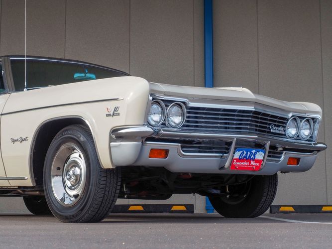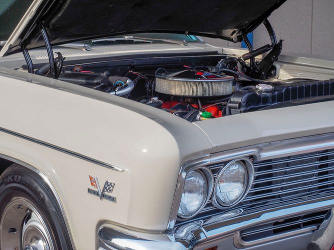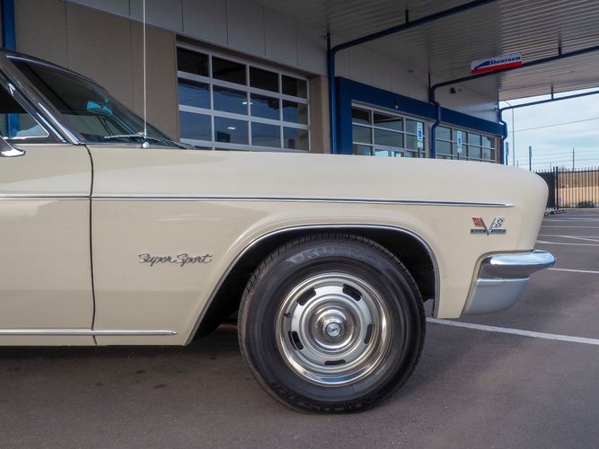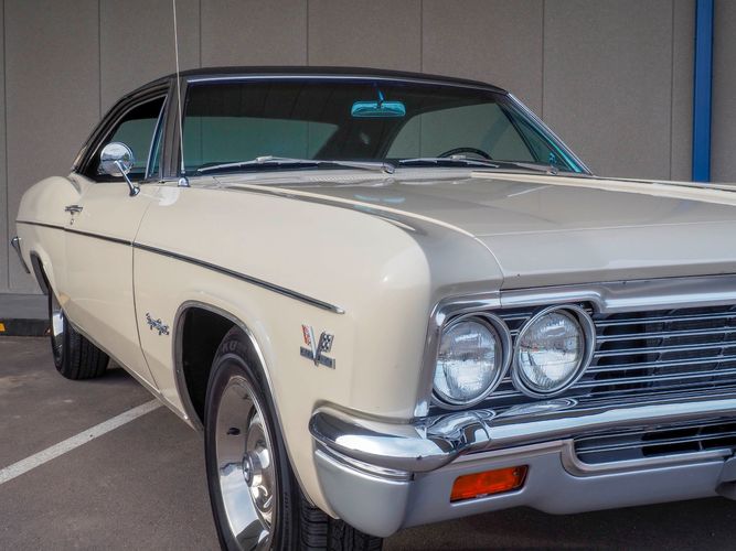 Under the hood is the original numbers matching 396 cubic inch big block motor. It is sporting a chrome dress-up kit but the original valve covers and air cleaner are included separately (see end of photo gallery). It is equipped with its original Quadrajet carburetor tuned and running great. The TH400 transmission shifts smooth and transfers the power to the rear end nicely. The suspension has been completely rebuilt and is sporting all new rubber bushings providing an incredibly smooth and quiet ride. Overall, this fully restored 1966 Impala SS is the ultimate cruiser car that will keep turning heads for years to come.