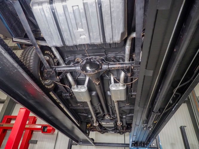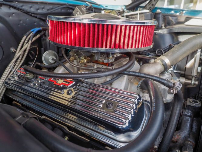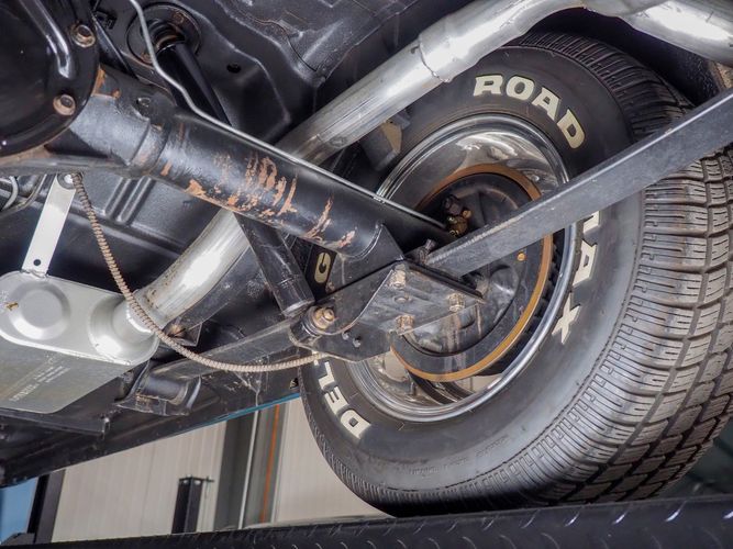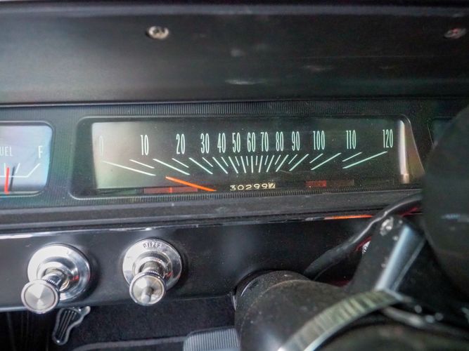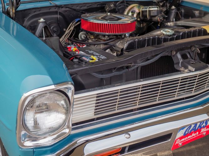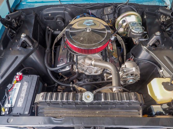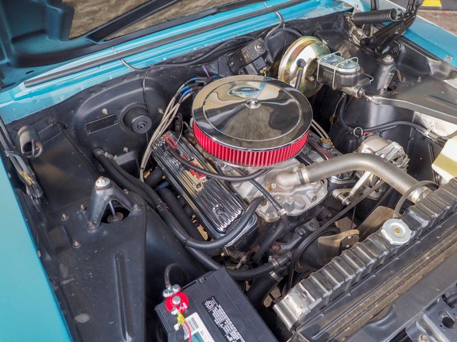 Under the hood is a very clean engine bay holding a 400 cubic inch V8 equipped with headers, Edelbrock 4 barrel carburetor and an aluminum intake to top it off. The 400 runs great and is believed to be very low miles since the total rebuild. Paired to a Powerglide automatic transmission with a ratchet shifter this car will spin the tires through the Positraction rear end and launch down the road no problem. This is a very solid street car and will cruise 65mph at 2500RPM.