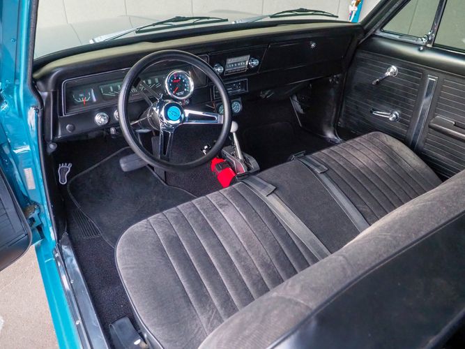 The newly upholstered interior is very comfortable, easy to get in and out of and the smoked windows make the interior very comfortable to sit in on a sunny day. Overall this Chevy II Nova is a high quality build with a great fit and finish that is ready to drive anywhere!