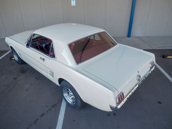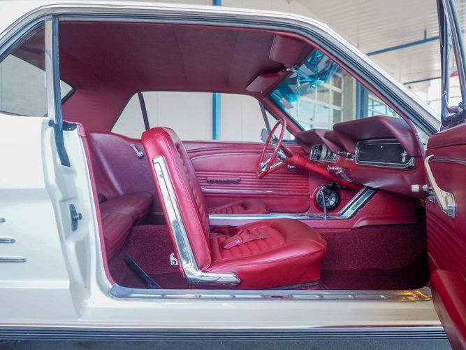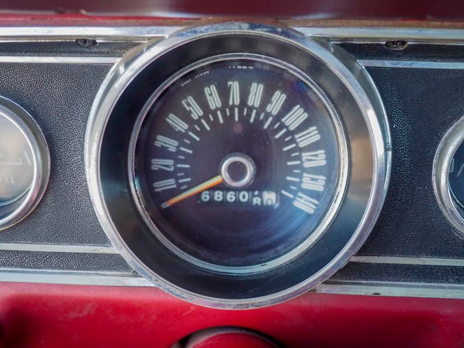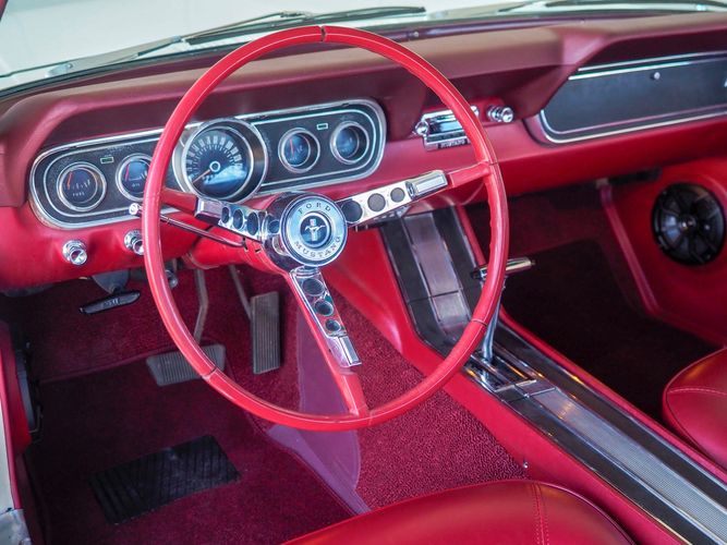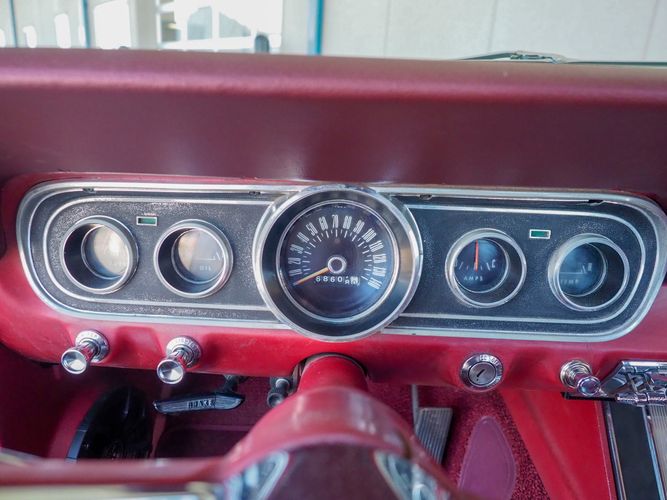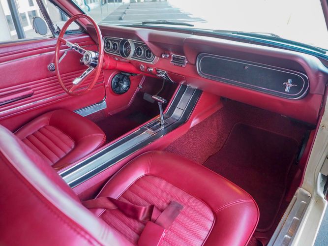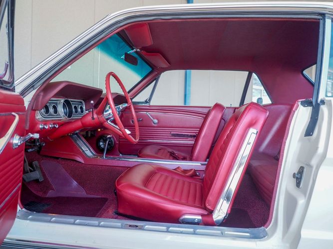 This is the perfect driver mustang with a solid foundation, good paint, a gorgeous red interior, and a smooth-running 289 V8. This car has been garaged stored for the last 30 years here in Colorado. The body is in great condition and very straight. All of the running lights work and the car is very comfortable to drive. A new stereo system is a nice touch with an original looking retro-radio. The car drives nice and smooth, stops good and has some decent power. The undercarriage is very clean with lots of new rubber components. Overall this is a perfect driver Mustang that can be driven and enjoyed for a very affordable price.