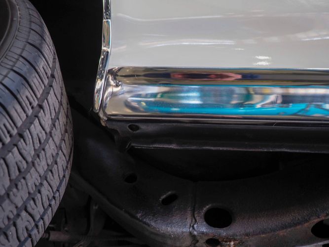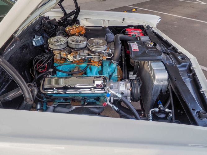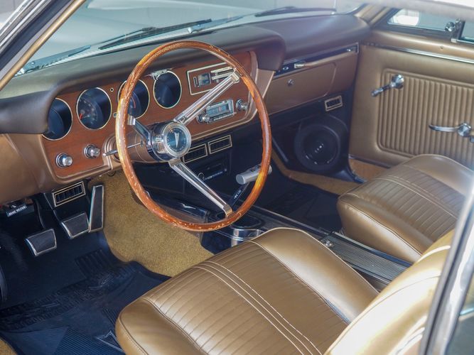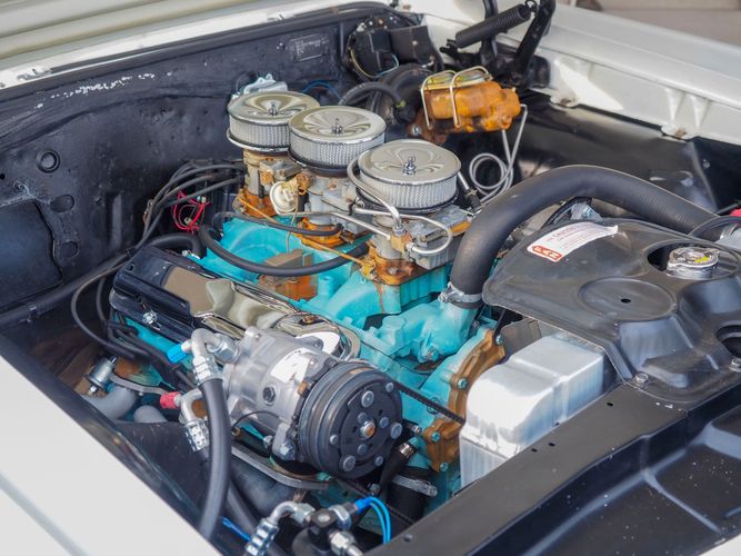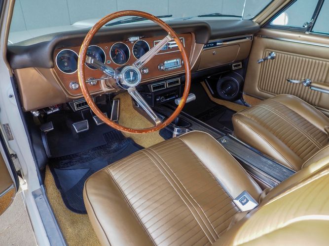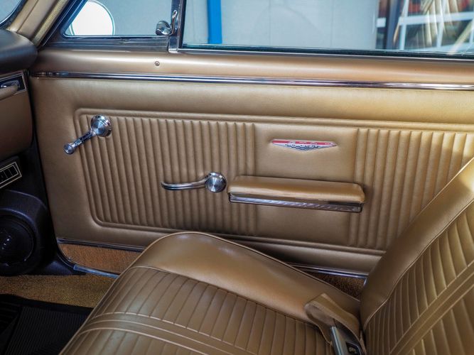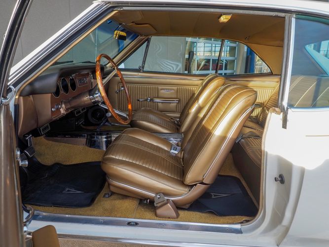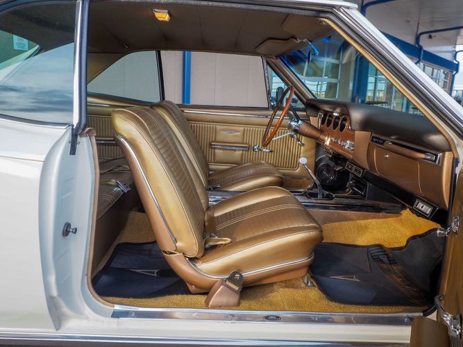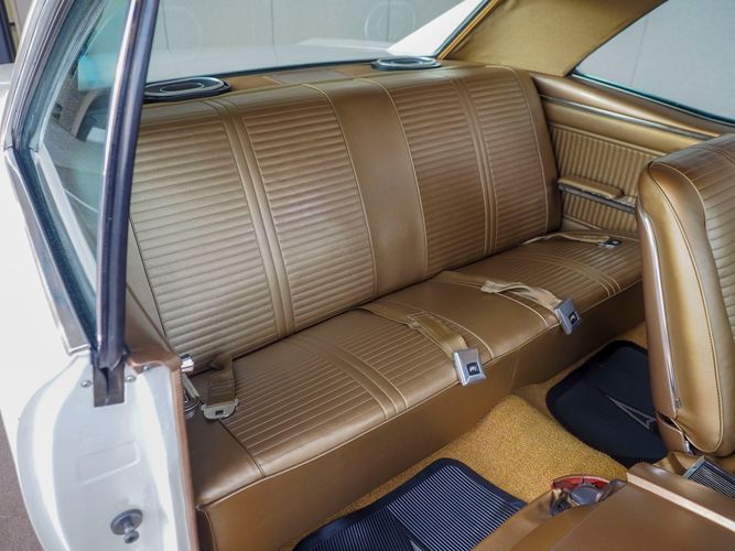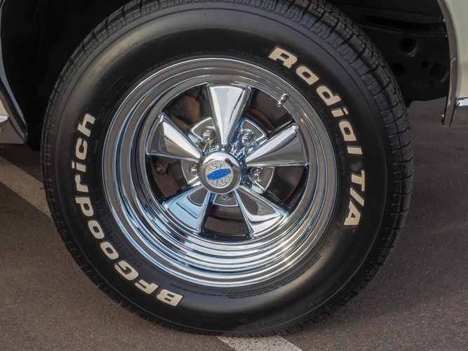 The body is nicely restored with a white paint finish and gold pin stripping. Opening the door exposes the gold vinyl buckets with the wood grain dash. The interior is very clean and recently restored. The entire car is car show ready and will get lots of likes and attention everywhere you take it!