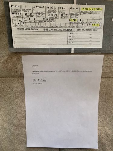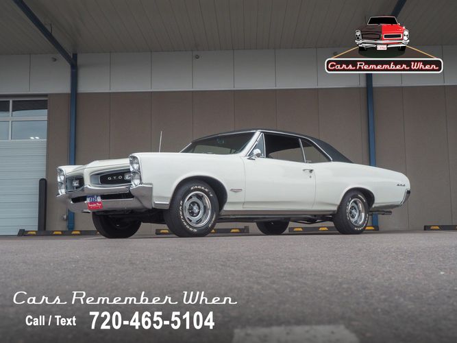 Offered by Cars Remember When is this beautiful 1966 Pontiac GTO equipped with a 389 cubic inch V8, power steering and power brakes. This car runs and drives great and is well documented with its original Protect-O-Plate and build sheet. It is very clean and has a nice restored bucket console interior. The 389 runs good and sounds awesome through the Flowmaster dual exhaust system. It is the "YS" suffix code please make sure to look at the engine casting picture in the photo gallery. The undercarriage of the car is very clean and well kept please make sure to look at these photos as well. Overall, this is a very nice and original 1966 GTO that sounds, drives, and looks GREAT! CALL TODAY 720-465-5104